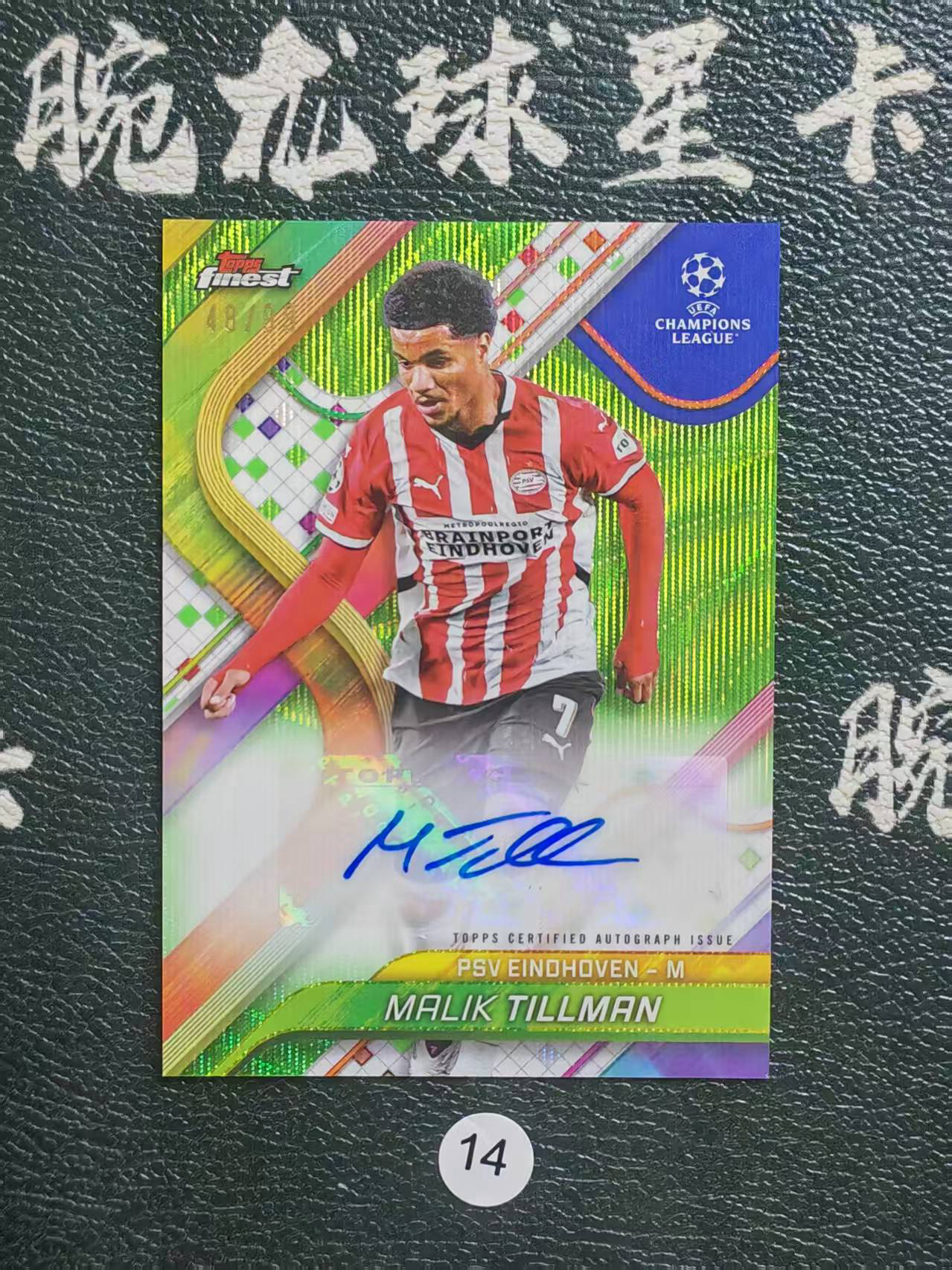 2025 【腕龙拍卖 接代卖】 腕龙E总aa8 Topps Finest 欧冠 欧战 蒂尔曼 美国 埃因霍温 绿波纹折 48/99编 签字 MALIK TILLMAN 卡品如图