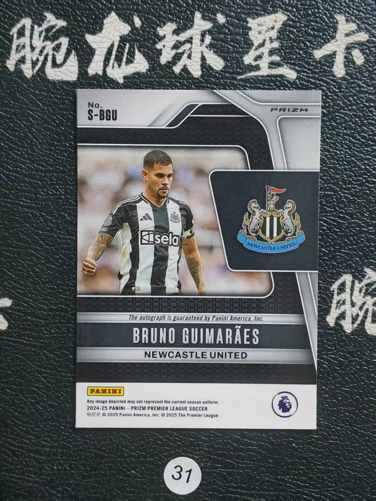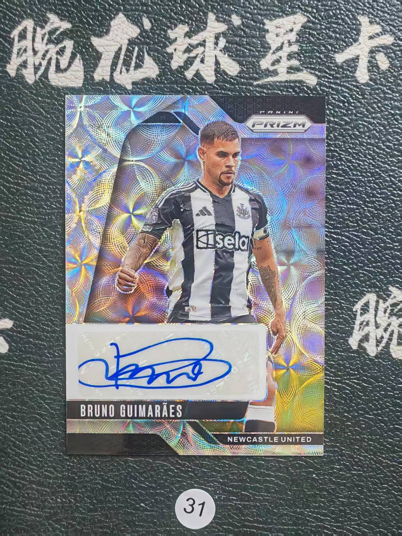 2024-25 【腕龙拍卖 接代卖】 腕龙E总aa8 Panini Prizm 英超 PZ 吉马良斯 纽卡斯尔联 巴西 银圈圈折 签字 BRUNO GUIMARÃES 卡品如图 收藏必备