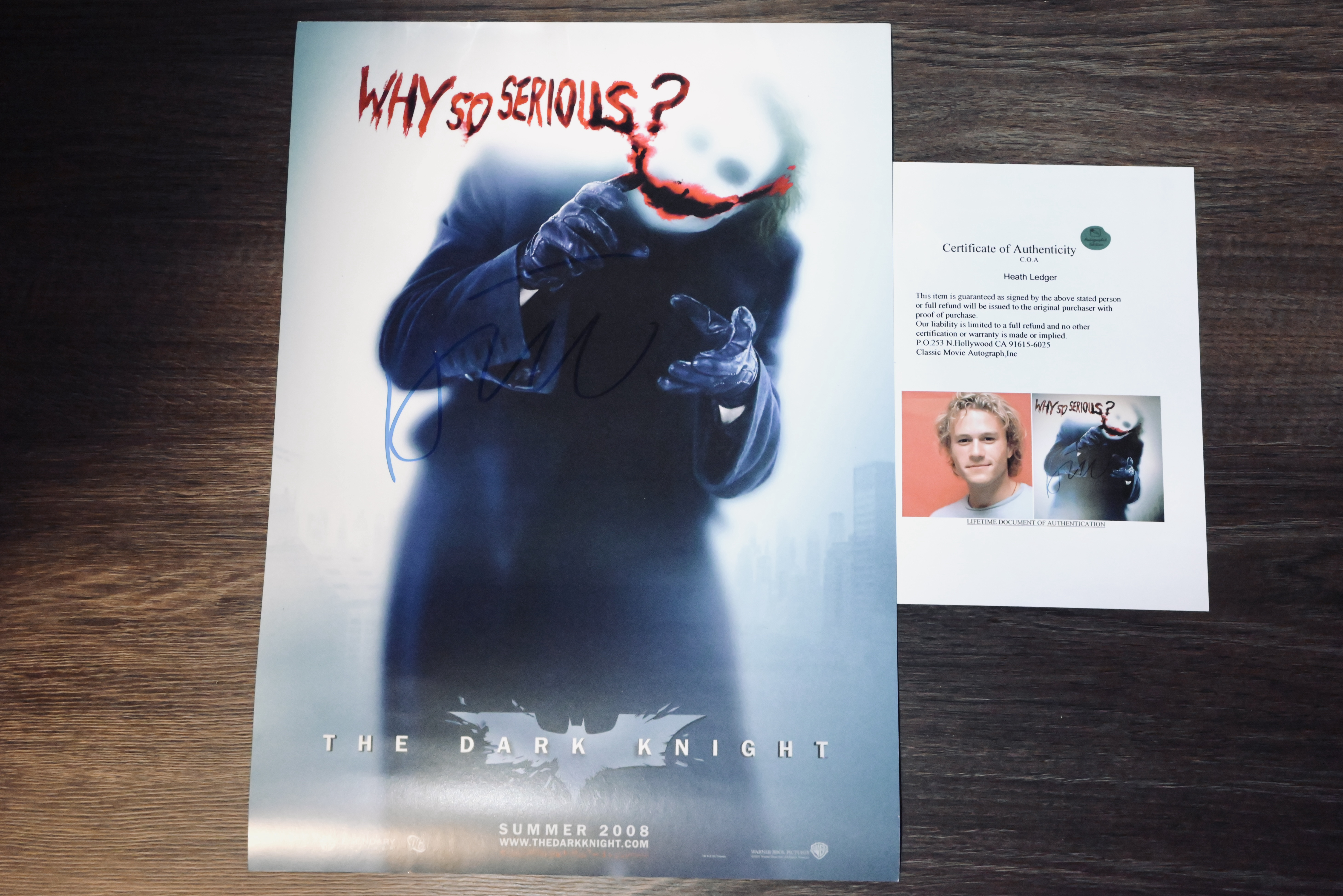 希斯莱杰《蝙蝠侠黑暗骑士》 小丑 亲笔《断背山》《狗镇之主》主演,已装裱,已故演员,绝版收藏