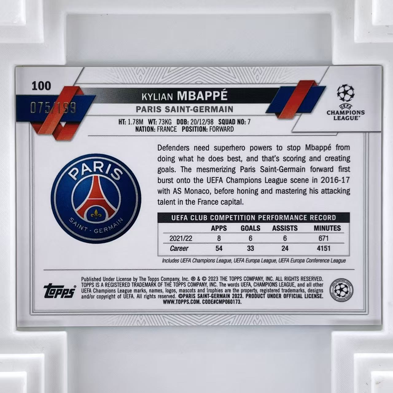 这一项十分重要!!!所有卡片为高清实拍图,劳烦仔细看图!!!有什么需要不清楚的可以联系客服,可以为您单独拍摄卡片额外细节;一旦出价默认接受卡品(不接受一系列没拍特写,自己没看仔细不想要等理由退换货)如无图片特殊展示瑕疵均为通行品相,一般prizm optic 等系列薄卡的小划痕印刷线,国宝IMM等系列厚卡的小白边小白角翘角钝角等,都属于通行品相。完美主义者请直接购买PSA10或者公博金标,发货之后不退不换(购卡的买家拆快递的时候也请拍开箱视频以便维护自己的权益)。描述如没有注明均不含卡砖(需要请与站内沟通)。