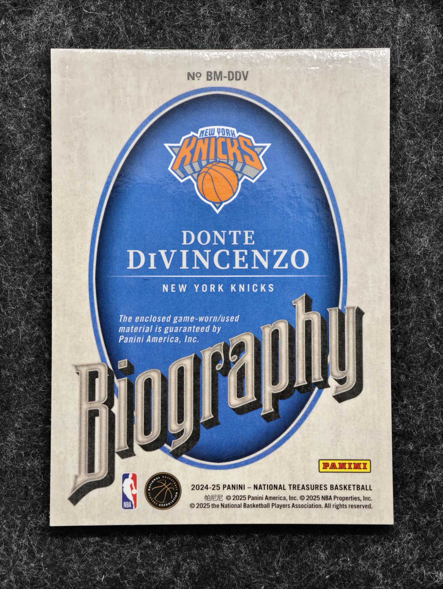 2024-25 Panini National Treasures Donte DiVincenzo 迪温琴佐 尼克斯 国宝 物料 patch GU落场 球衣 /99编 【PP拍卖】 yx