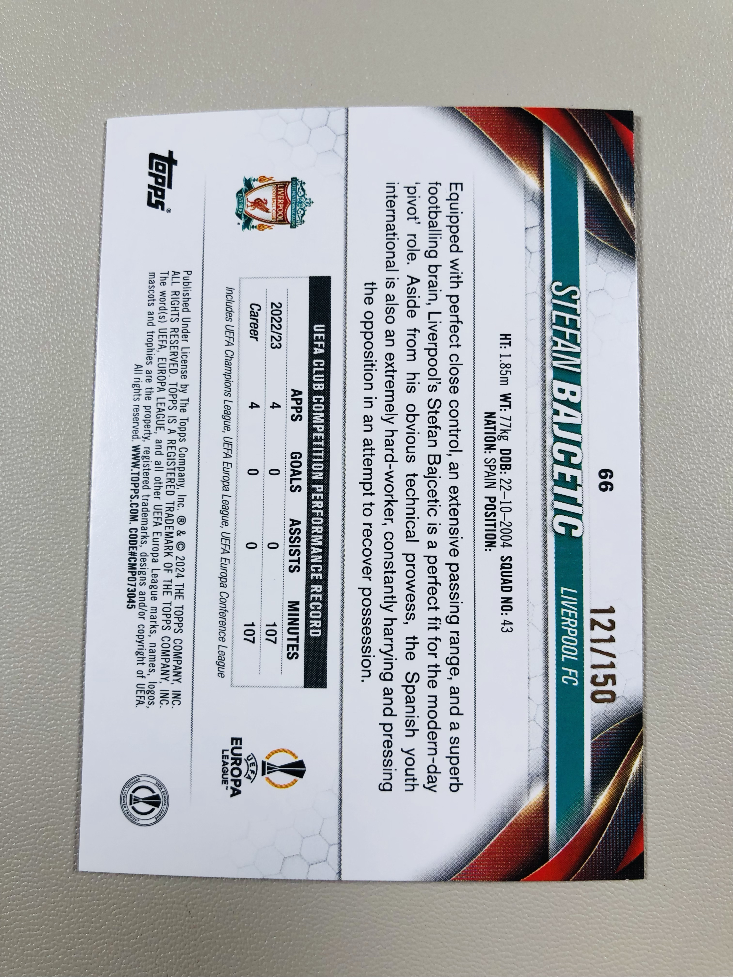 2024 Topps UCC Bajcetic 欧冠 UCC 碧玉 利物浦 巴伊切蒂奇 限量 /150编 实卡精美投资收藏俱佳 刘哥0924