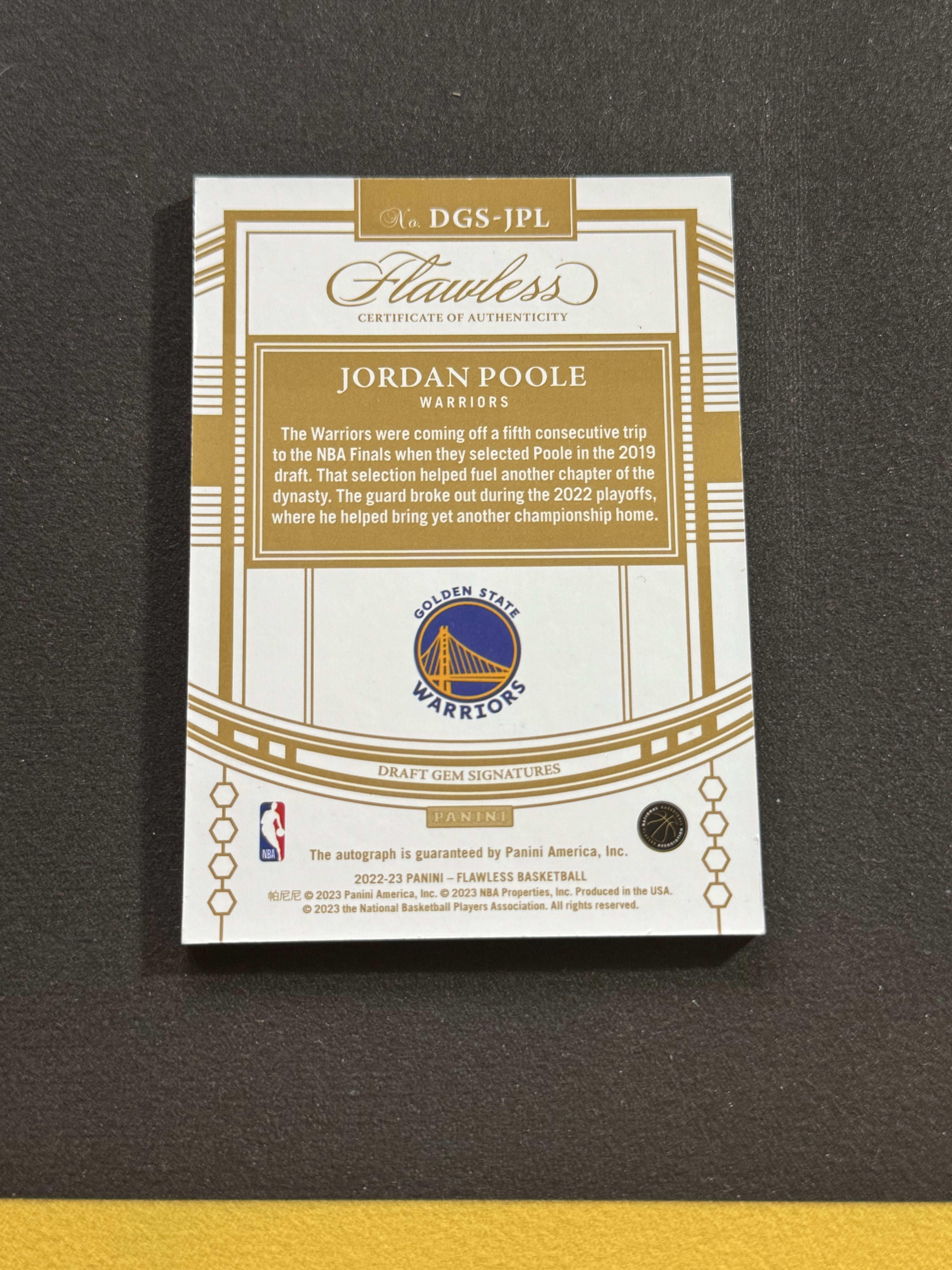 2022-23 Panini Flawless Jordan Poole 乔丹 普尔 勇士 手提 10编 低编 金折 金平行 签字 卡签 微瑕如图