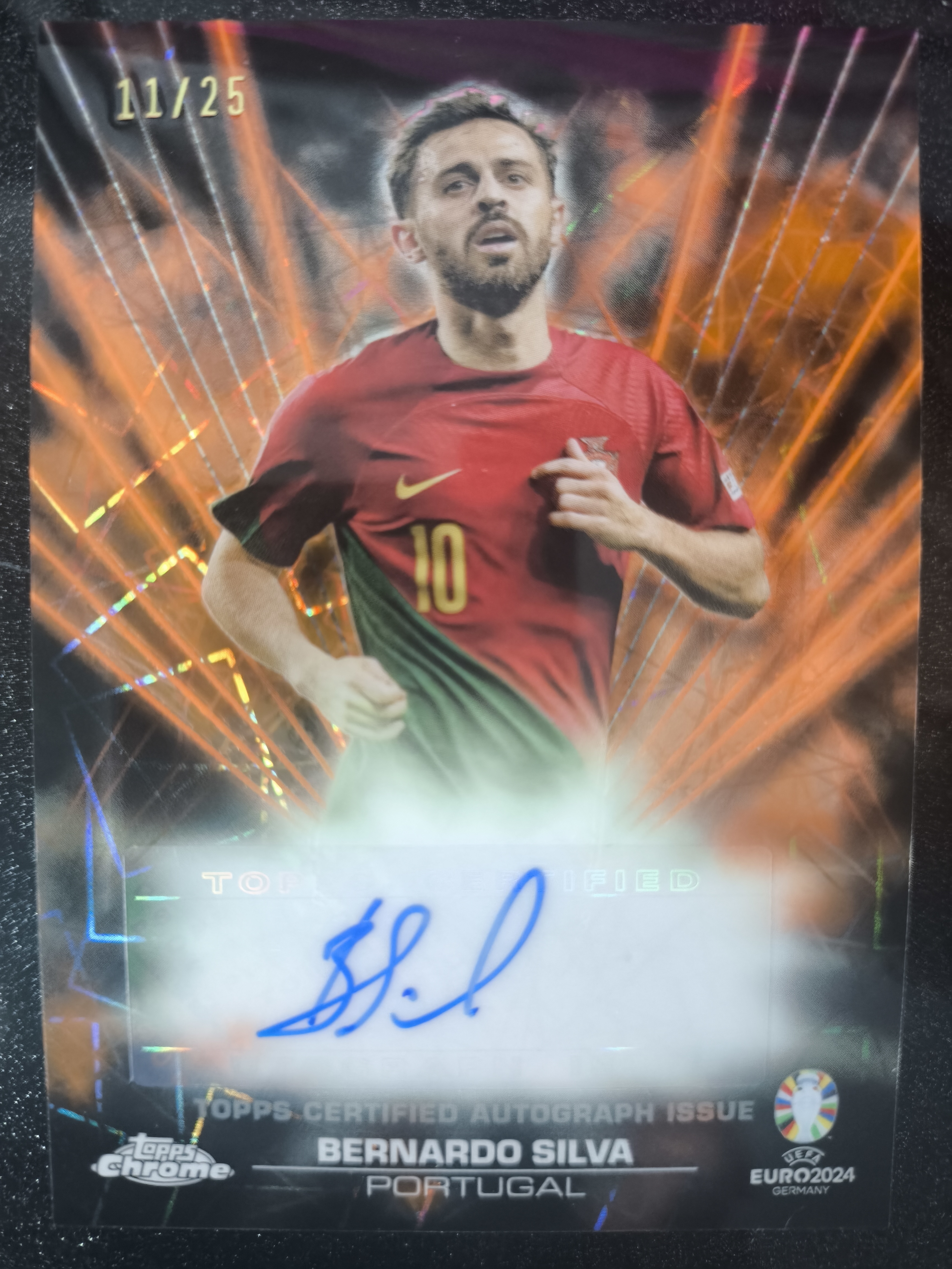 2024 Topps EURO Bernardo Silva 欧冠 TC 曼城 葡萄牙 B席 席尔瓦 11/25编 签字 激光签 完美签 橙镭射折 三冠王 四连冠 全能中场 C罗队友 实卡精美 专收必备