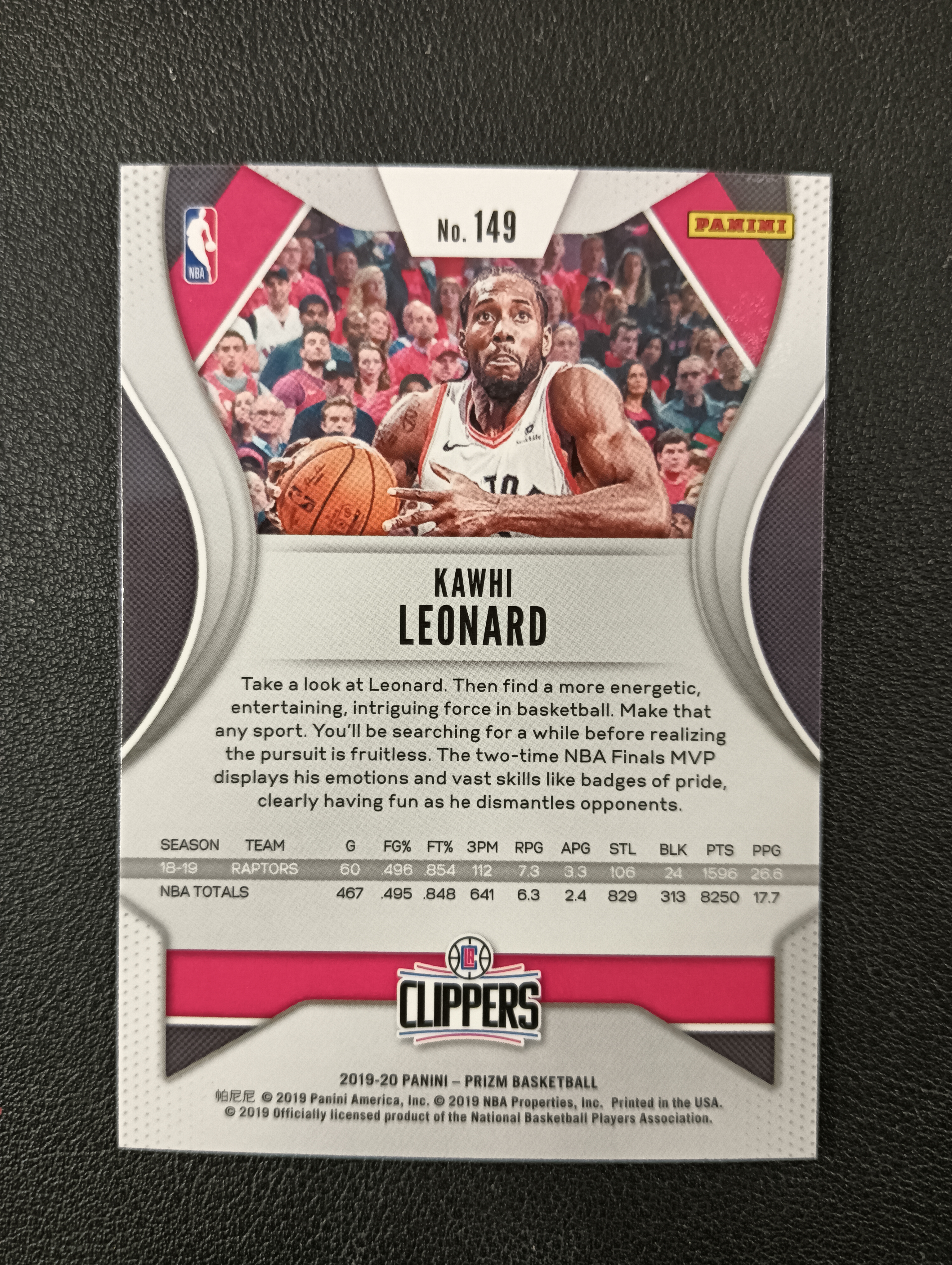 2019-20 PANINI PRIZM KAWHI LEONARD 【卡仓-起飞074】快船 科怀伦纳德 BASE NO.149