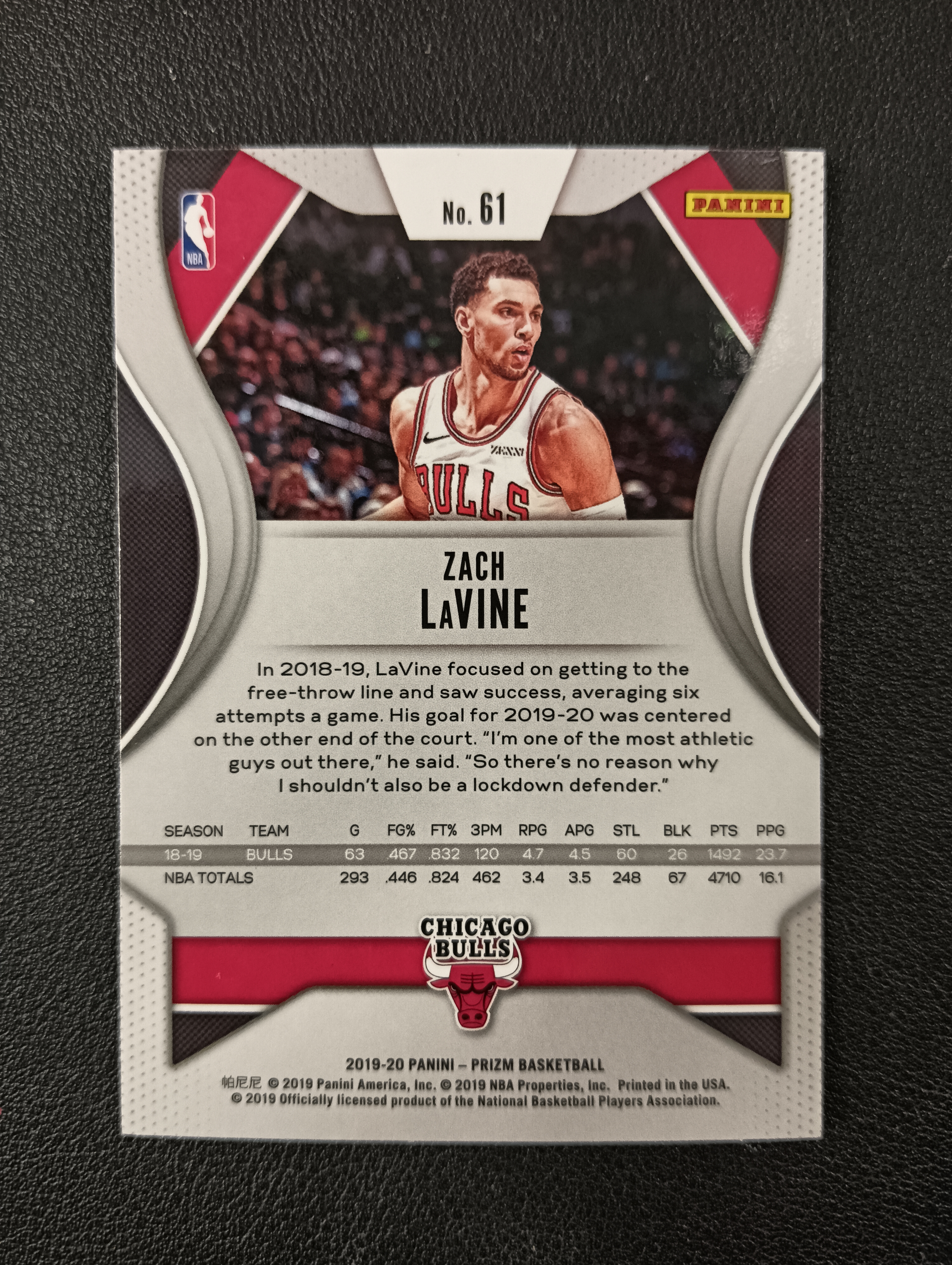 2019-20 PANINI PRIZM ZACH LAVINE 【卡仓-起飞074】公牛 扎克拉文 BASE NO.61