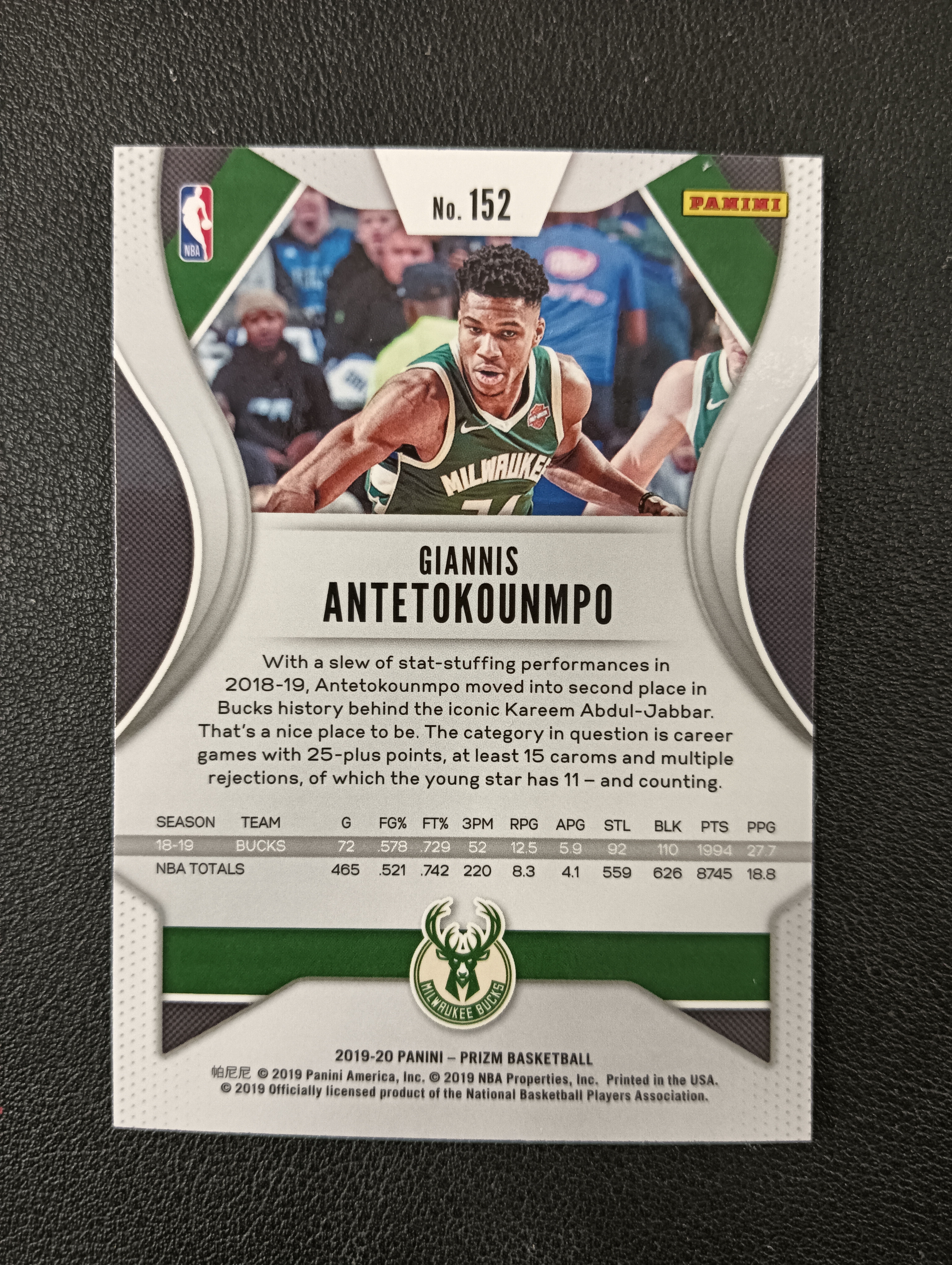 2019-20 PANINI PRIZM GIANNIS ANTETOKOUNMPO 【卡仓-起飞074】雄鹿 扬尼斯阿德托昆博 字母哥 BASE NO.152