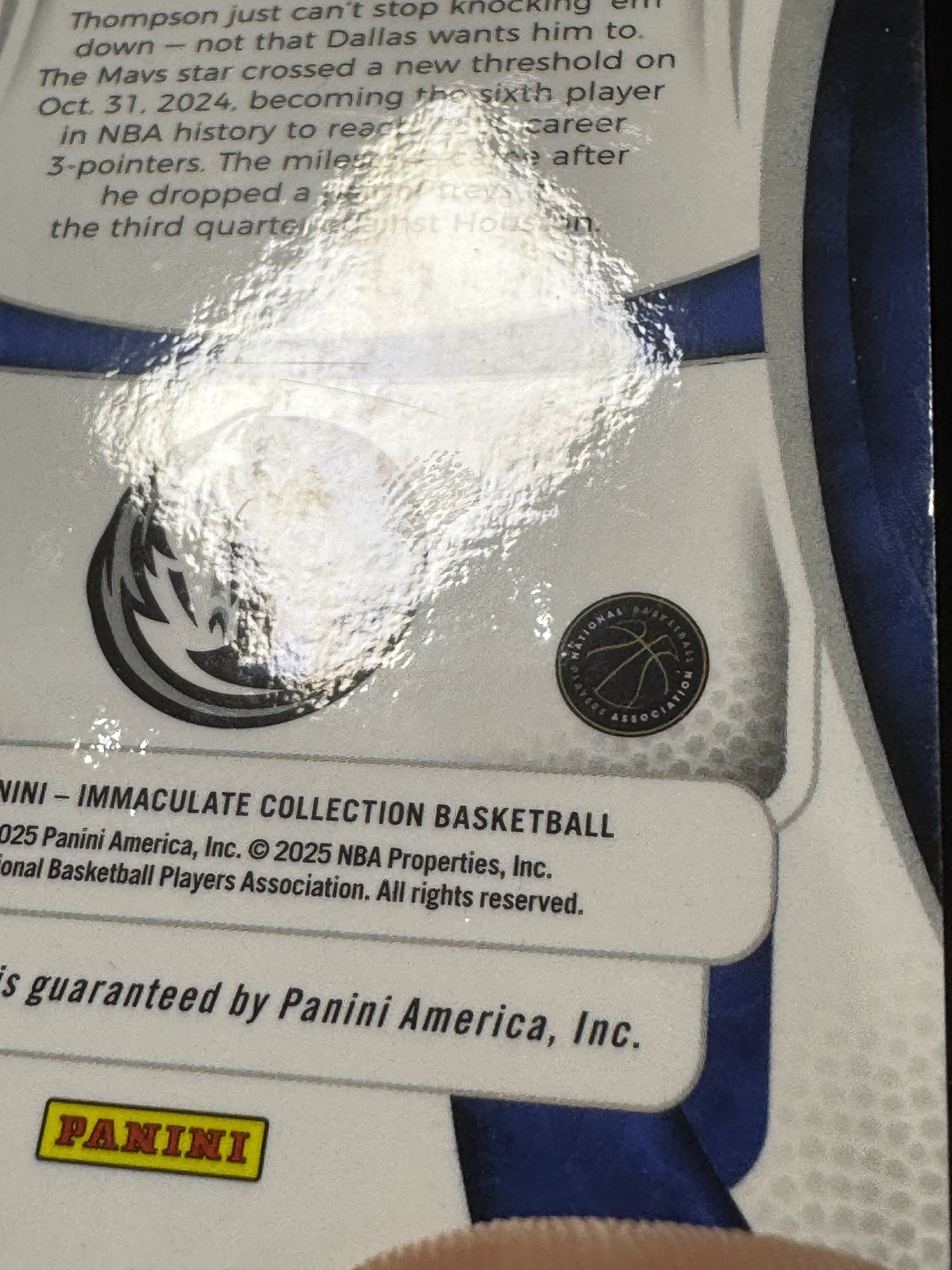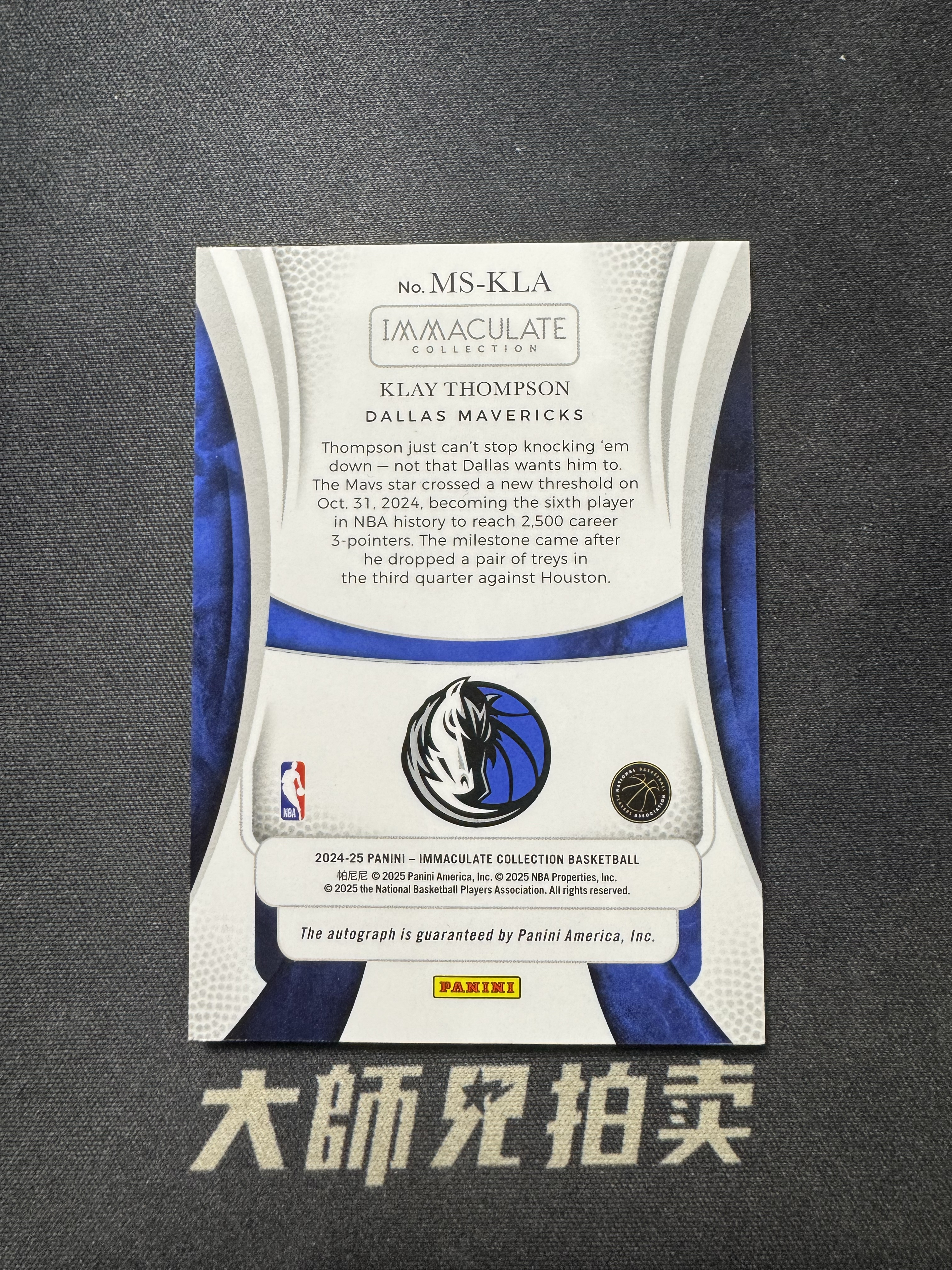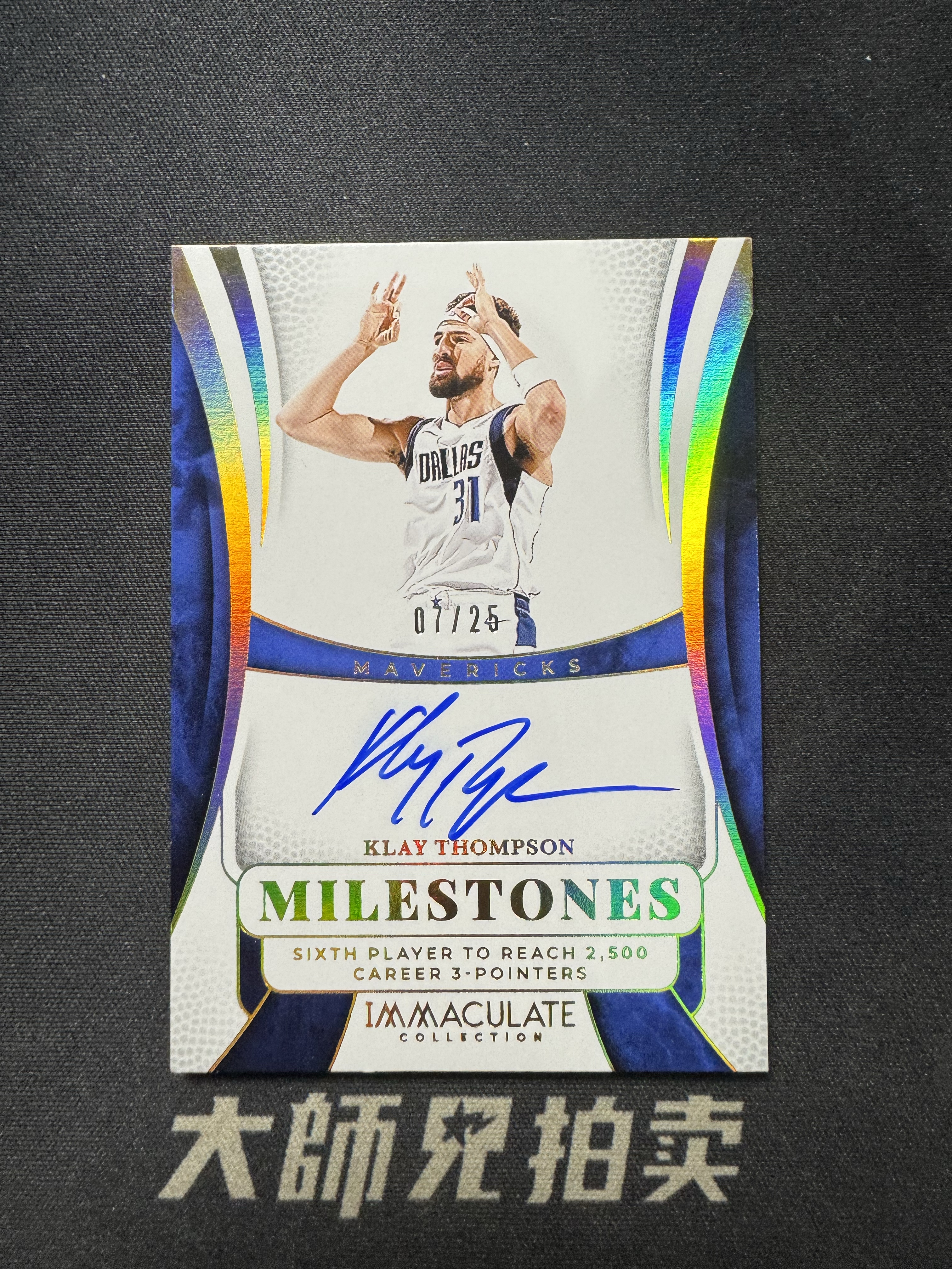 【大师兄拍卖】2024-25 Immaculate Klay Thompson 独行侠 克莱 汤普森 Milestones 里程碑签 /25编 签字 卡签 单一平行 三分球记录 瑕疵看图 -发哥-