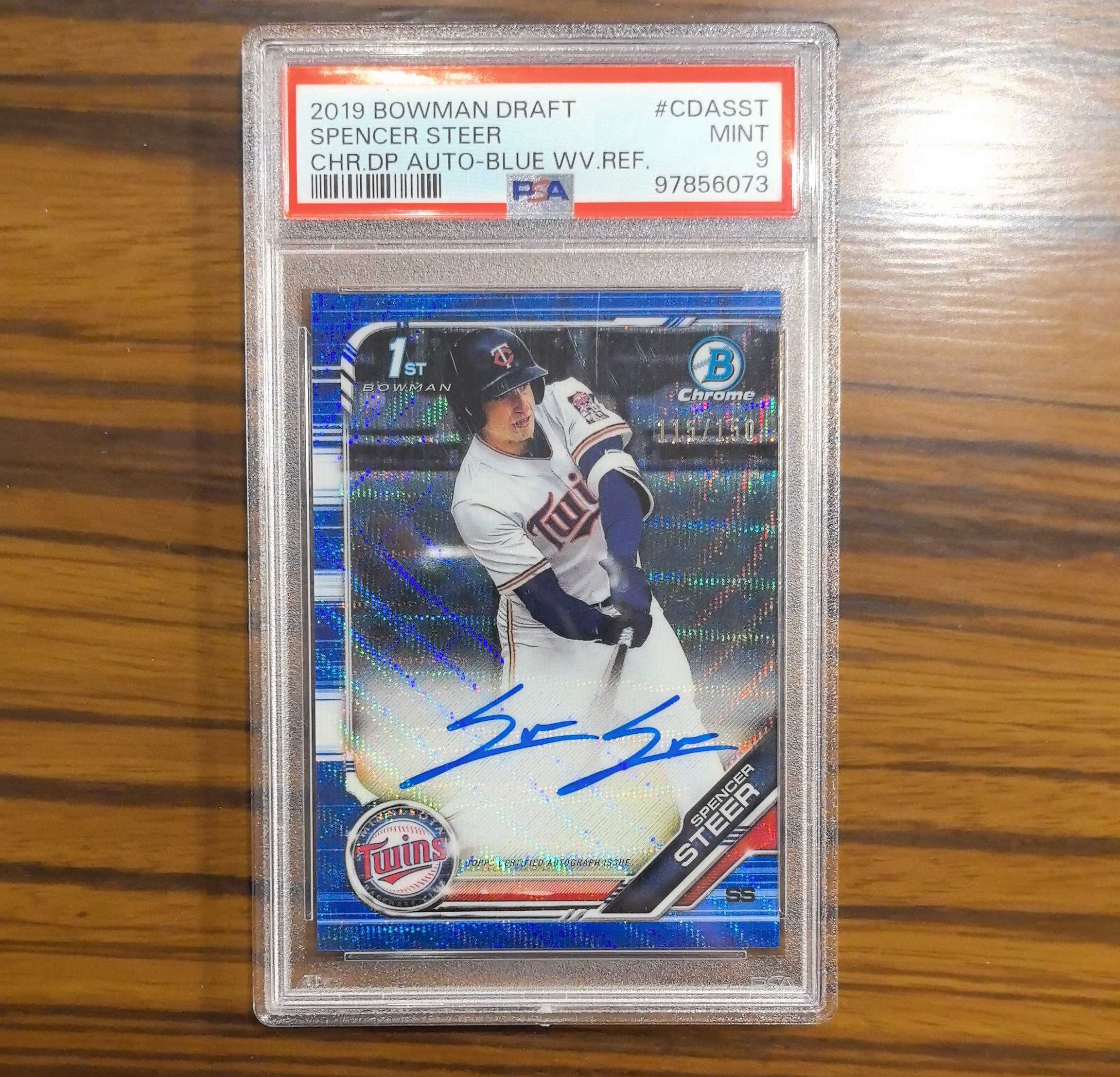 2025 Topps 【锡安代卖】 累计照常 棒球mlb bowman 1st新秀签字卡签 蓝波纹折150编 明尼苏达双城 现红人主力巨星 Spencer steer psa9分 卡品如图 mike