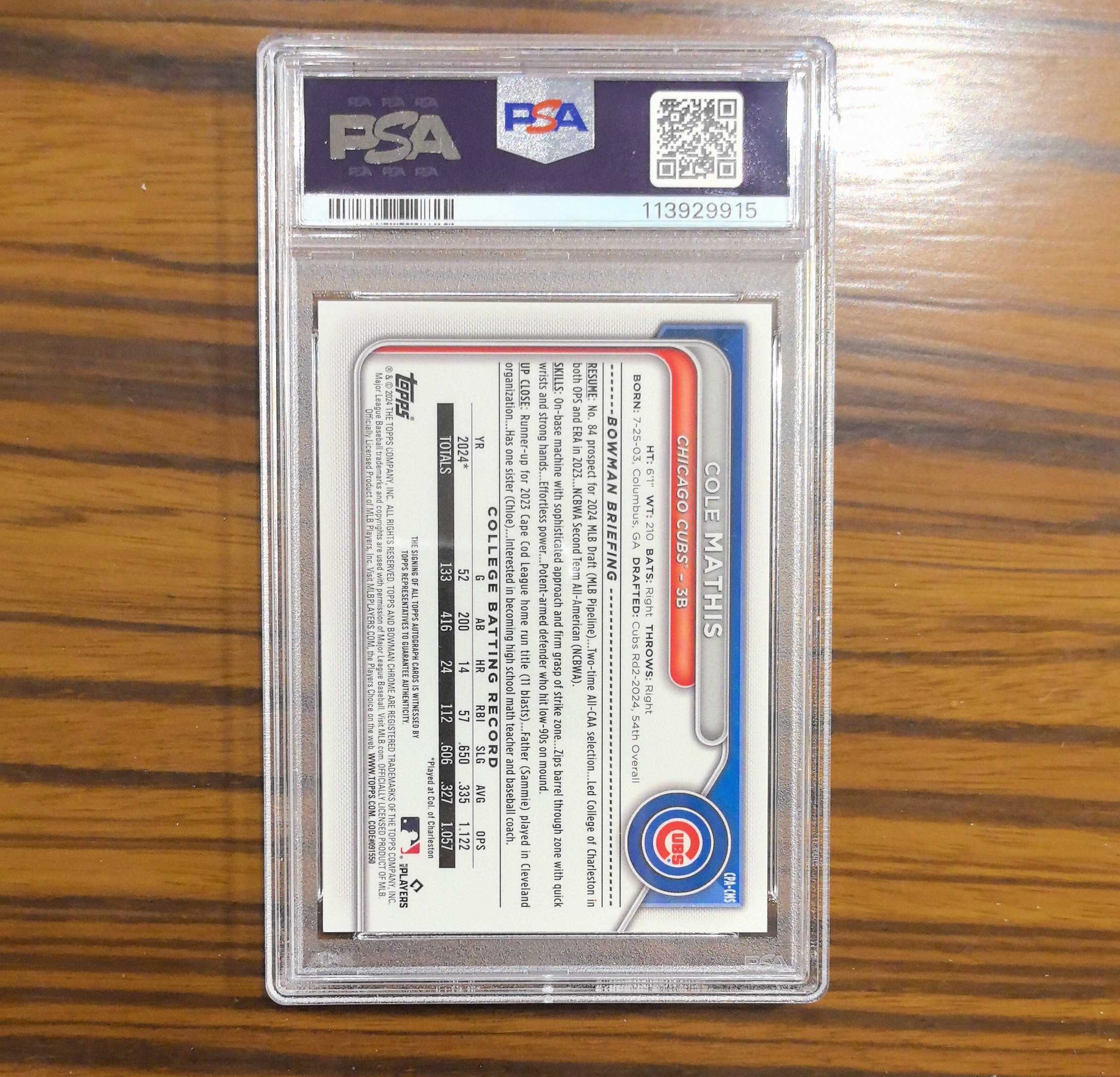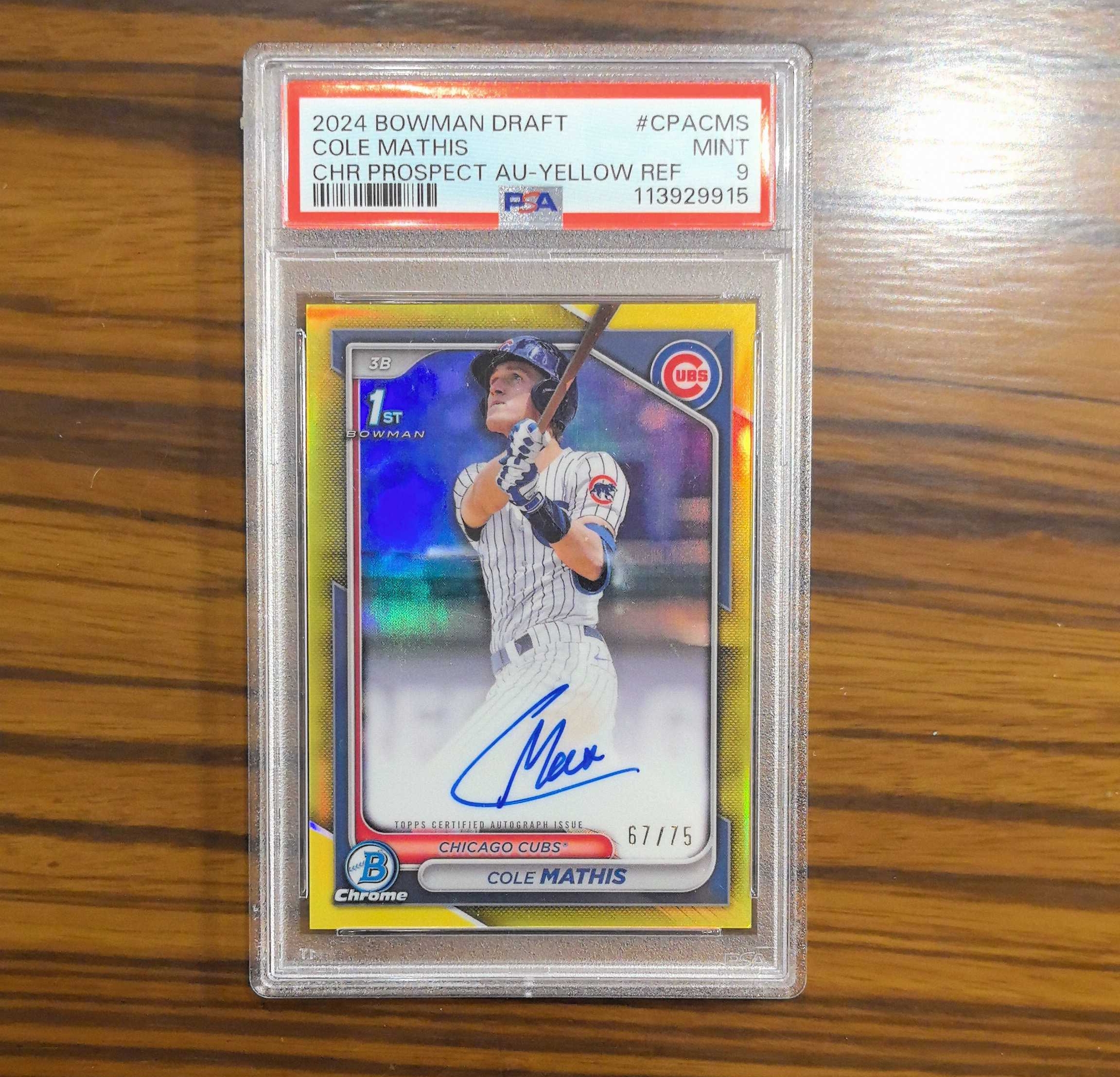 2024 Topps 【锡安代卖】 累计照常 棒球mlb bowman 1st新秀签字卡签 黄折75编 芝加哥小熊超级热门大物 cole mathis psa9分 卡品如图 mike