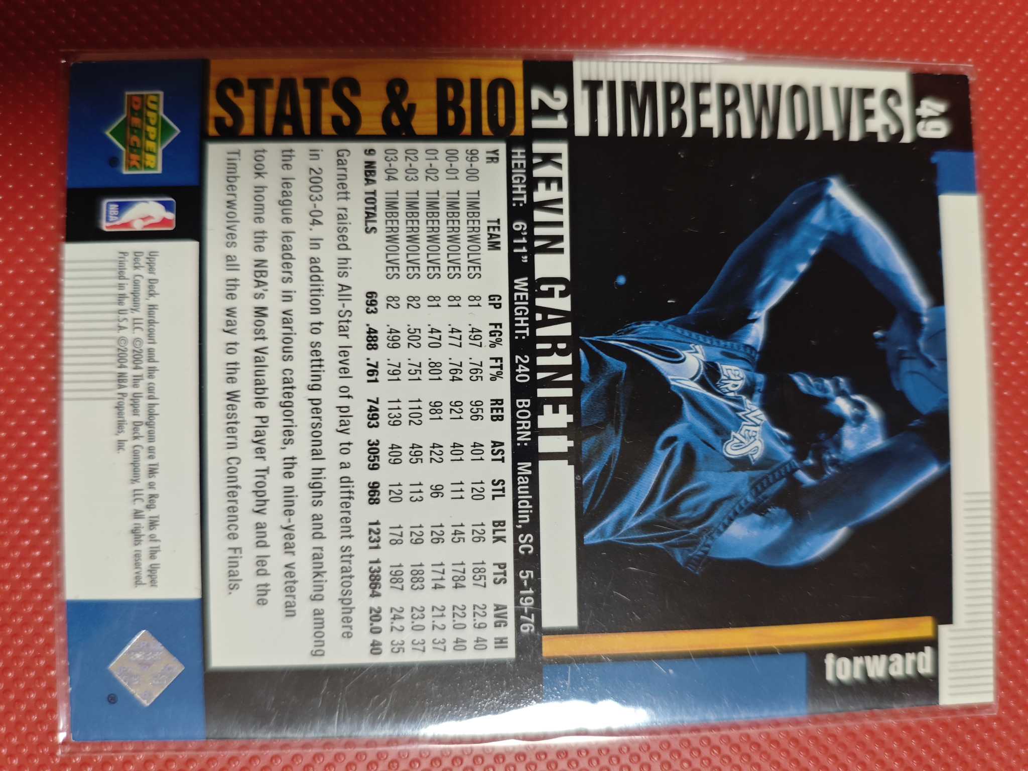 2004-05 Upper Deck Hardcourt Kevin Garnett 狼王凯文加内特木纹特卡!