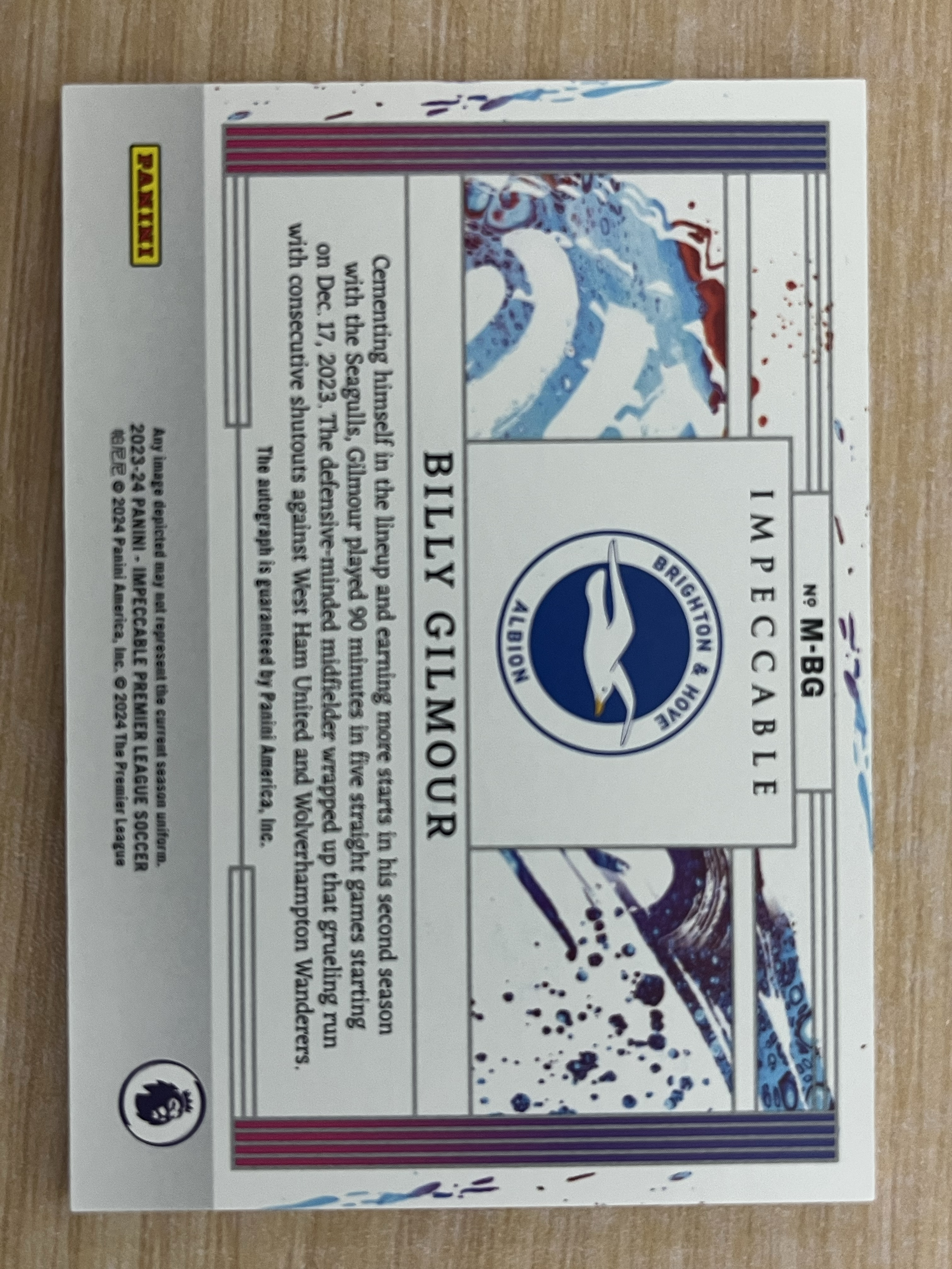 2023-24 Panini Impeccable Billy Gilmour 小真金 苏格兰 布莱顿 切尔西 那不勒斯 比利-吉尔摩 同背签字 贴签 带编 限量11/99