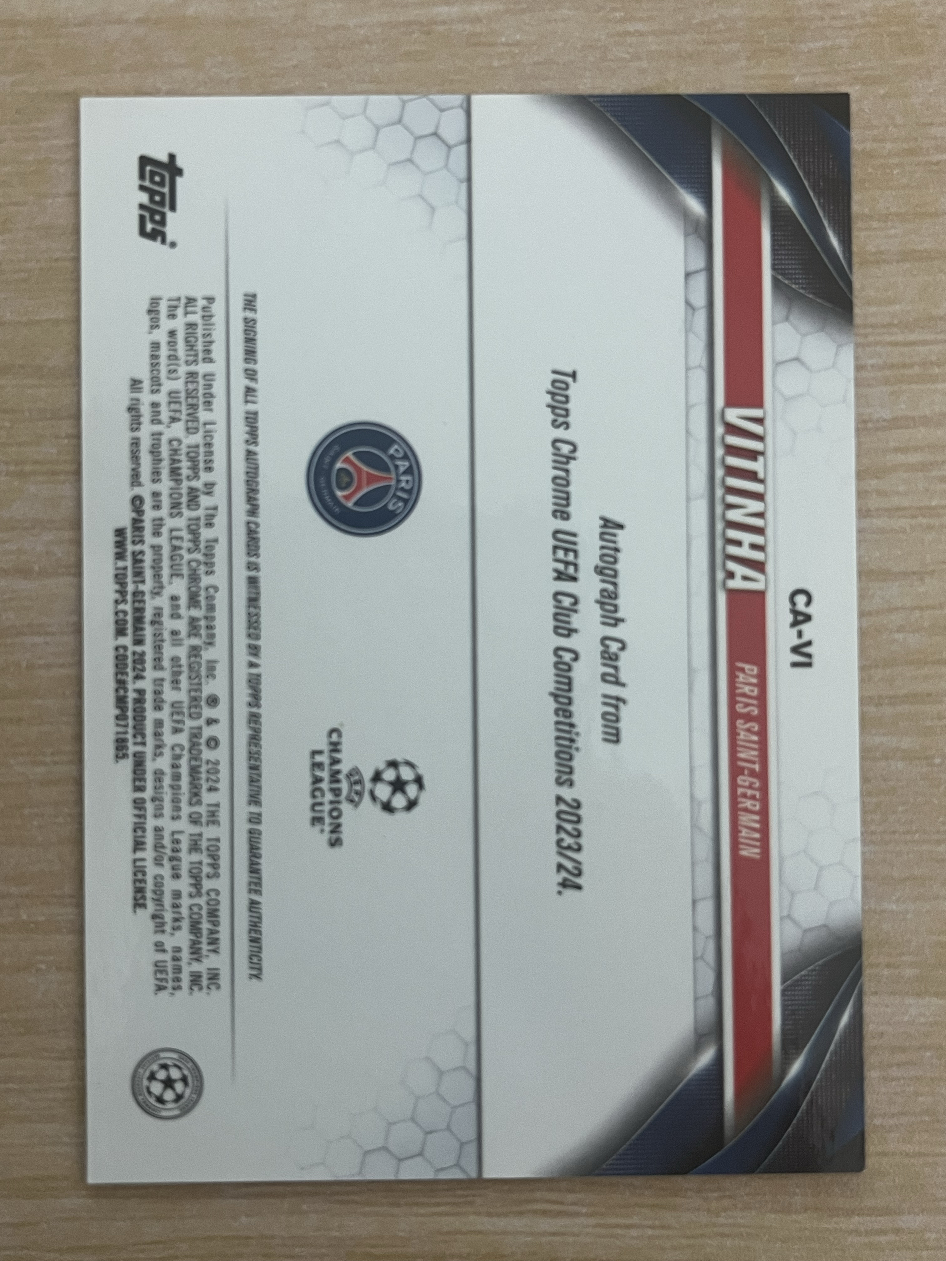 2023-24 Topps UEFA Champions League 维蒂尼亚 Chrome Vitinha 欧冠 巴黎圣日耳曼 维蒂尼亚 葡萄牙 青折 签字 199编 完美签 专收必备