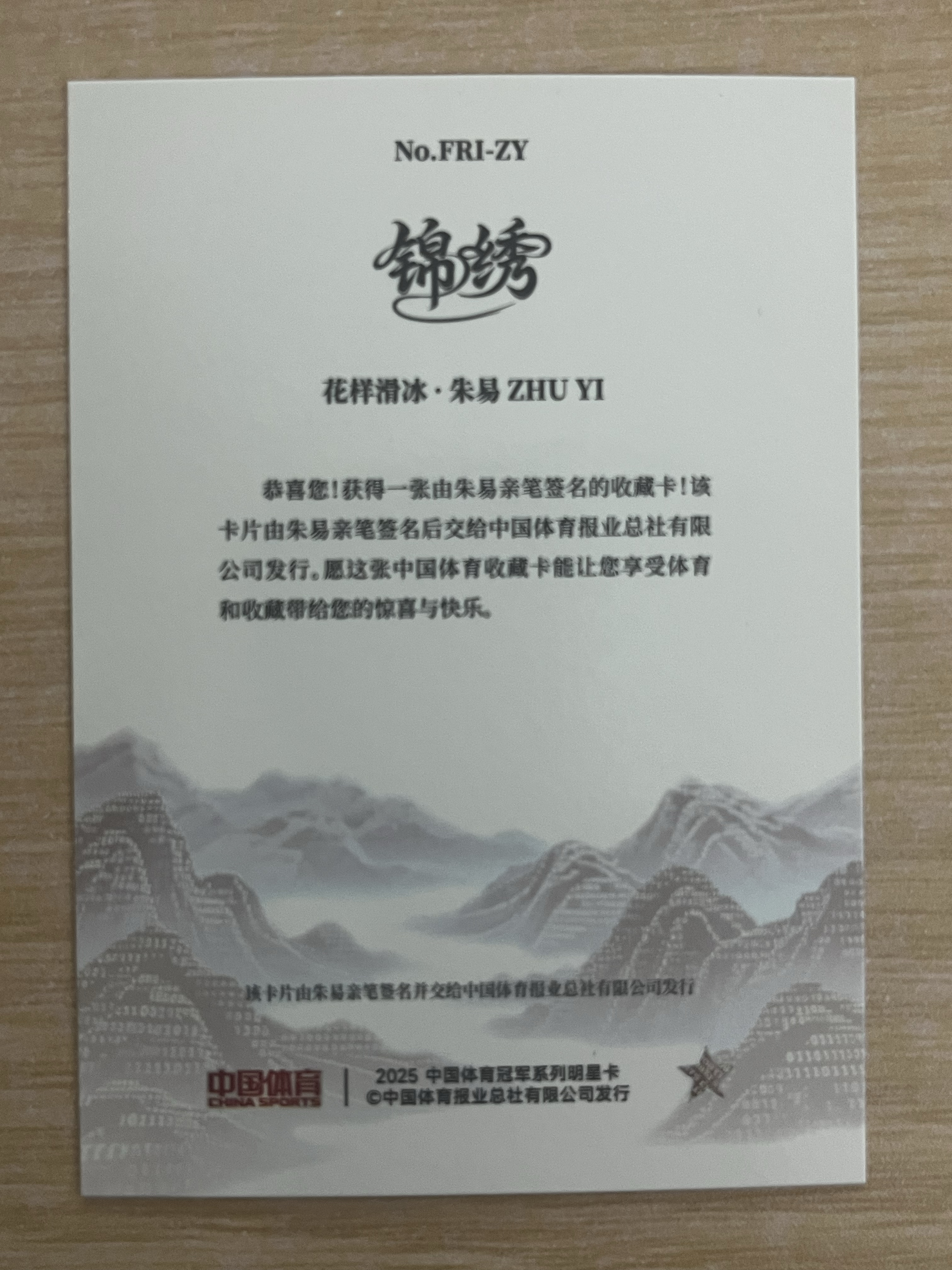 2025 奇卡 QICA 锦绣 中国体育 花样滑冰 朱易 RC新秀 银折 新锐签字卡 奥运会冠军 世界冠军