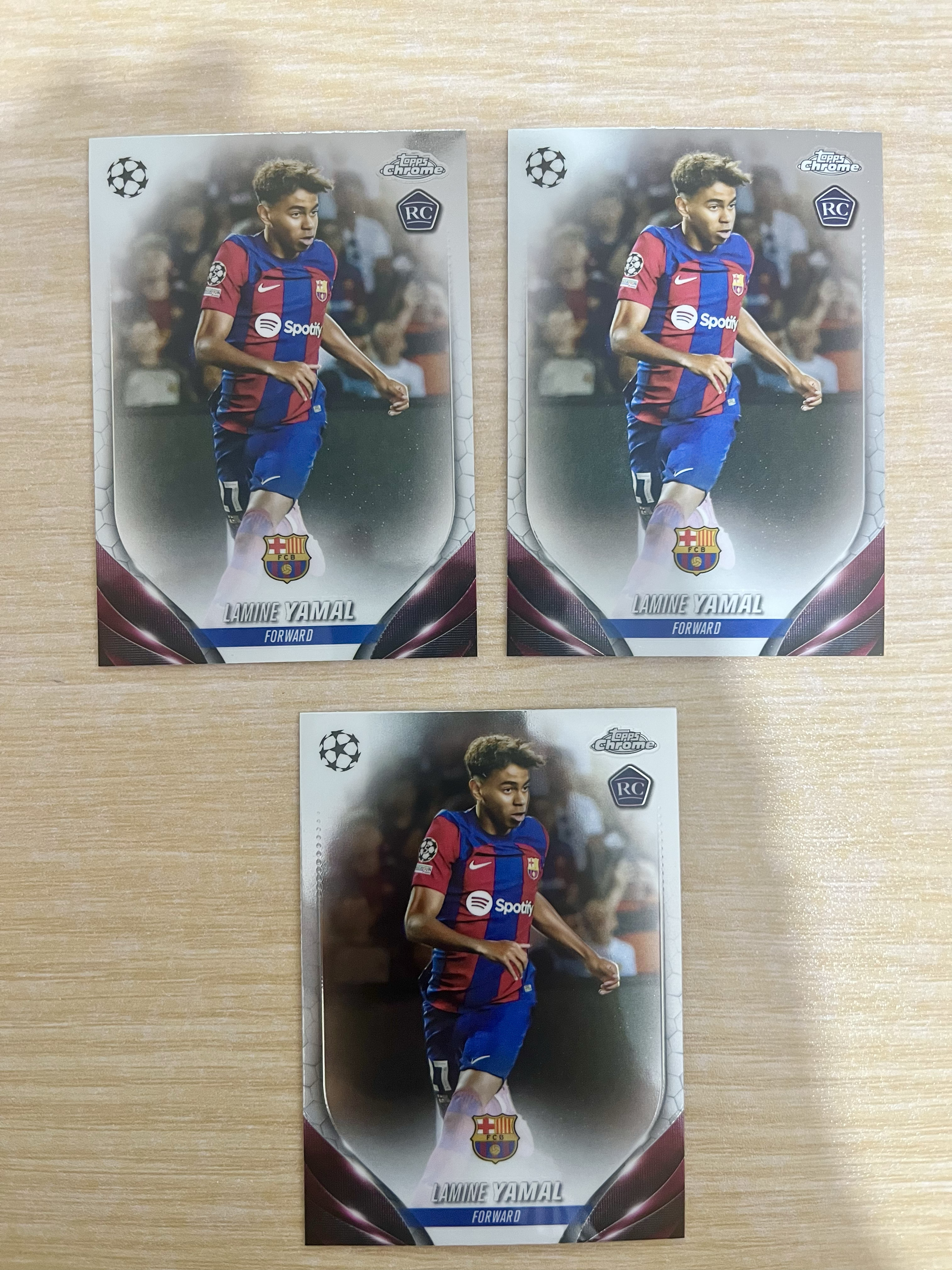 2023-24 Topps Chrome 巴萨 巴塞罗那 亚马尔 RC新秀 普卡 正base 3张 lot 不保卡品 西班牙 Laminne Yamal