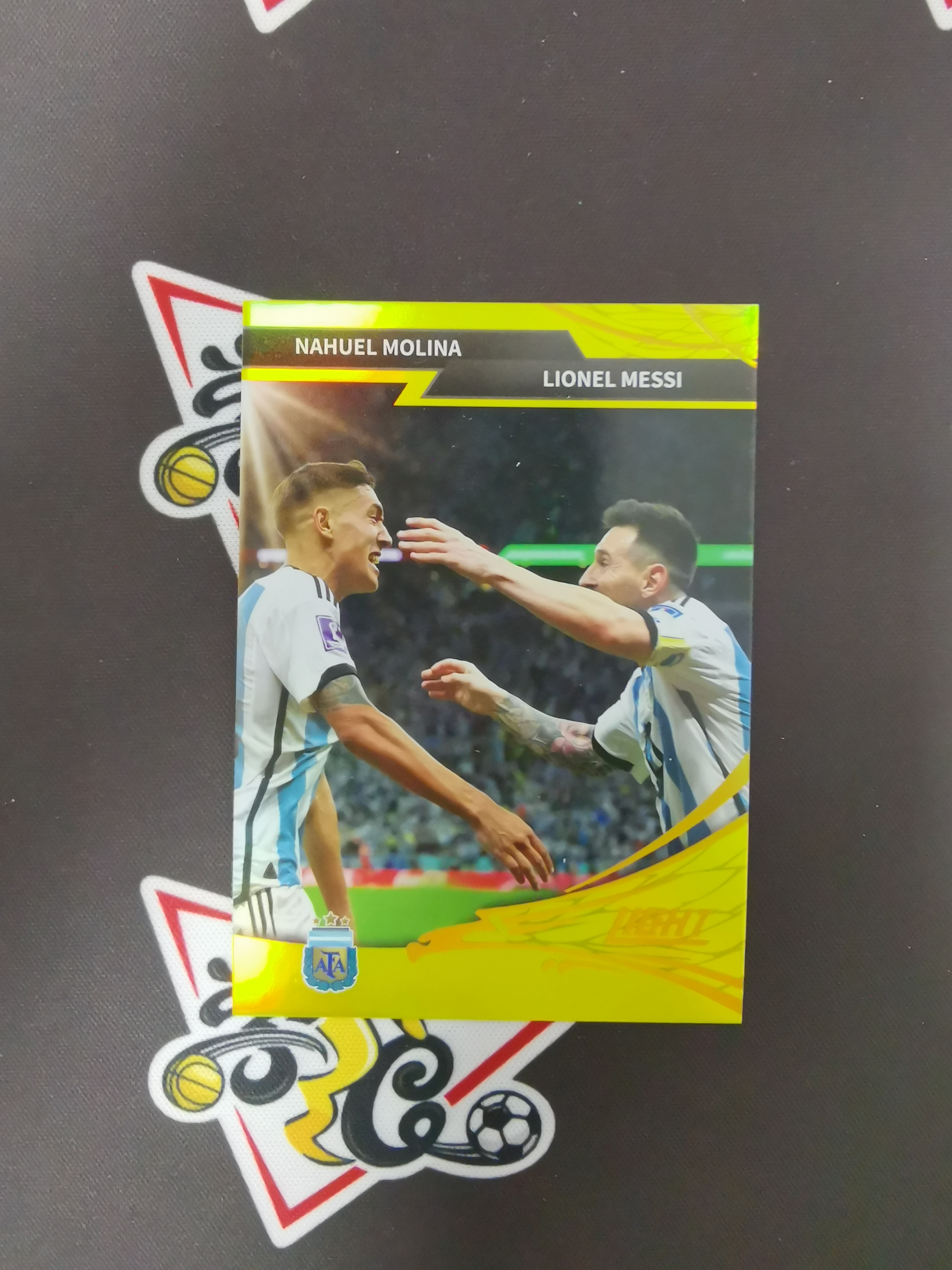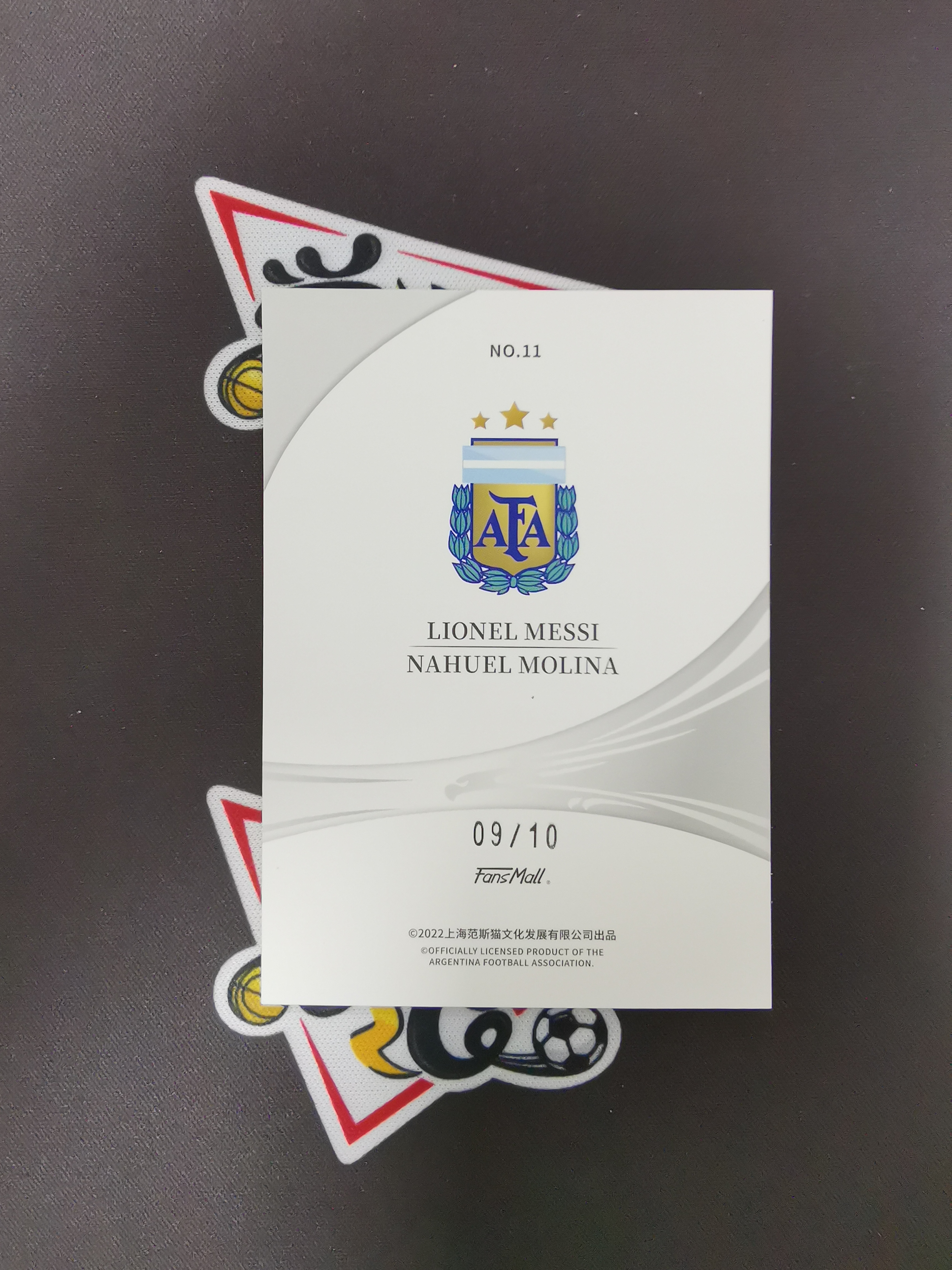 2022 Fansmall 阿根廷队盒 Lionel Messi 【学浪】梅西 莫利纳 庆祝特卡 金折 10编 世界杯夺冠年 印痕如图不保卡品 天都