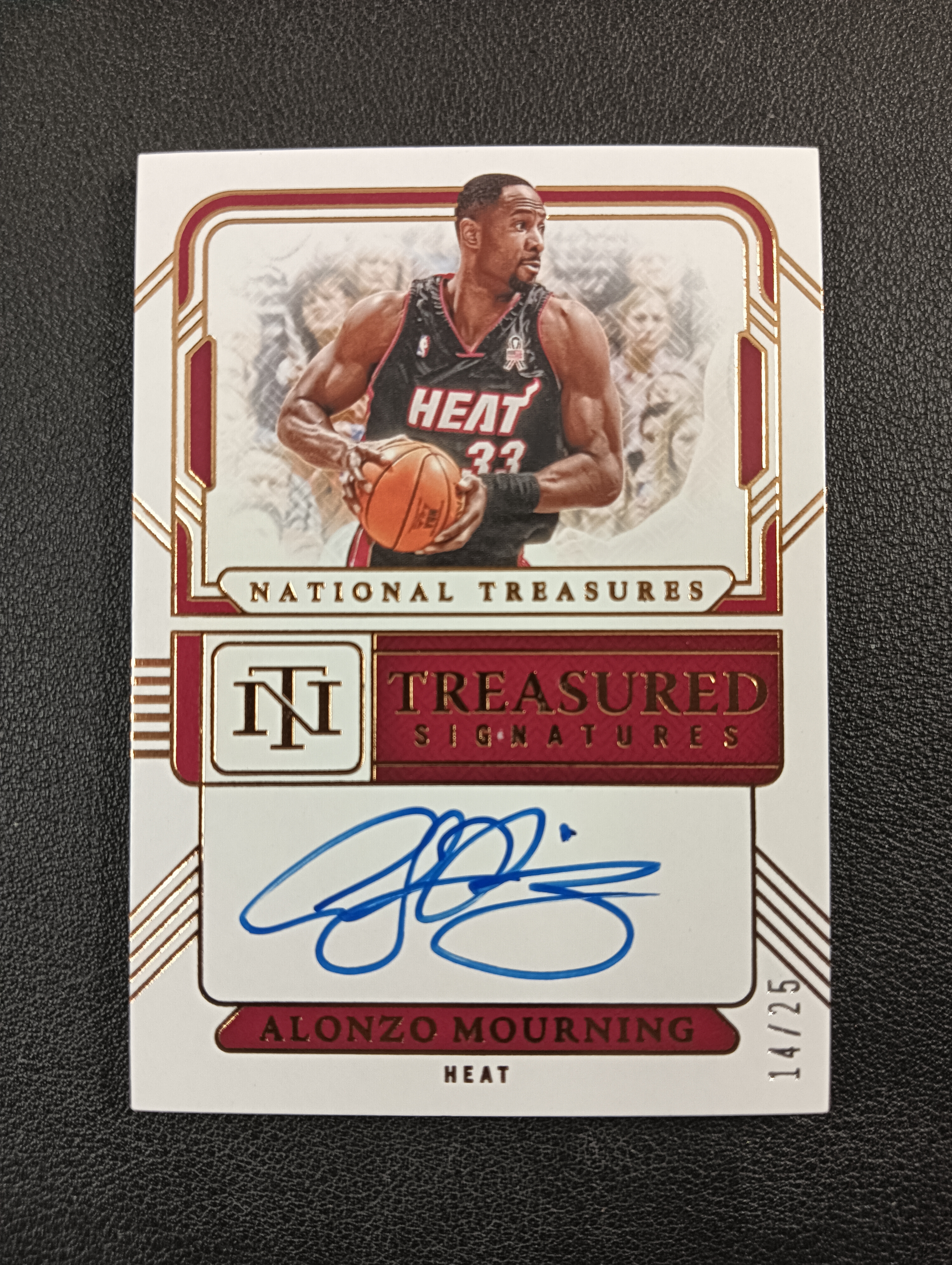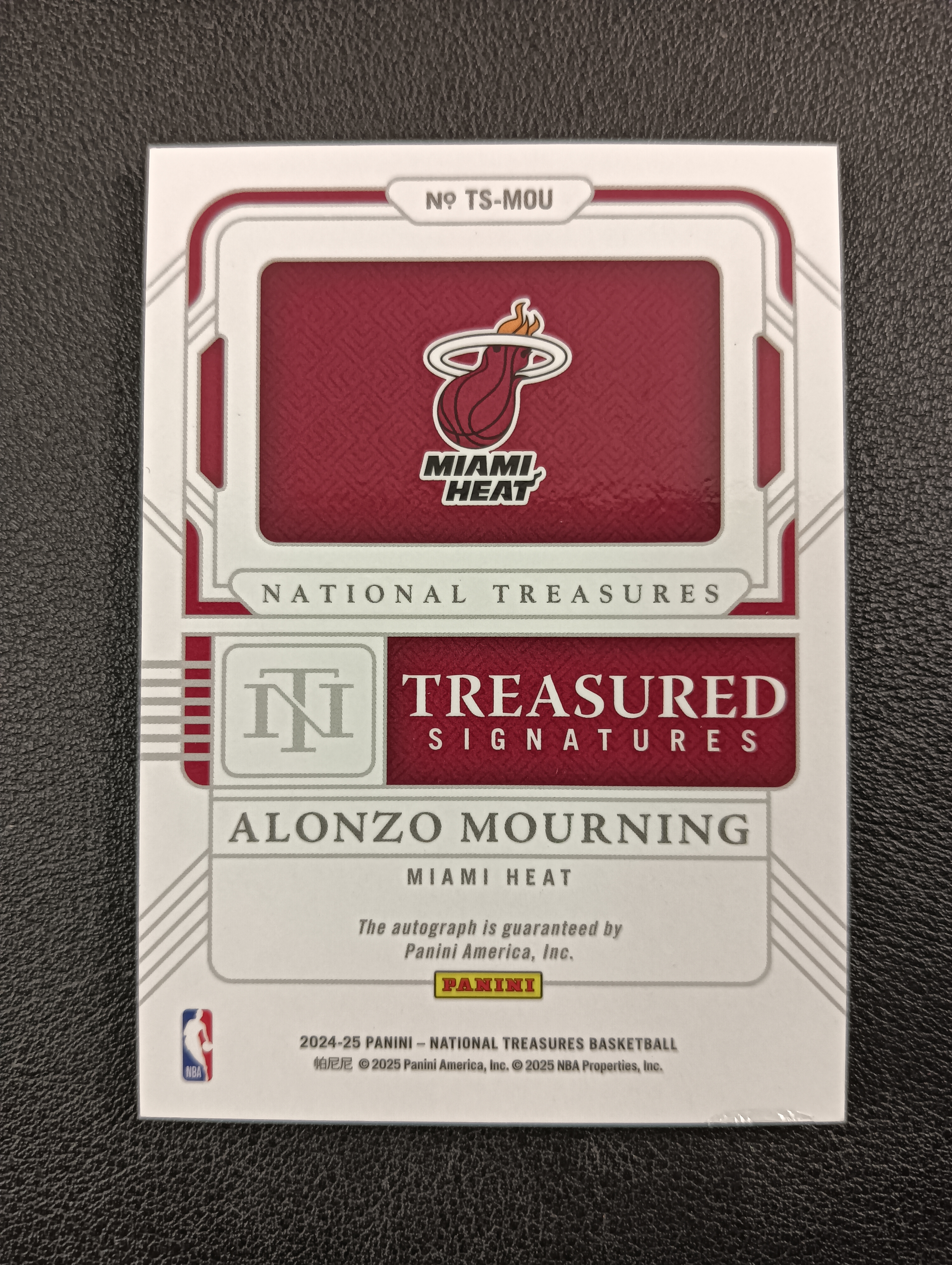 2024-25 PANINI 国宝 ALONZO MOURNING 【卡仓-冰冰075】热火 阿朗佐莫宁 铜版 TREASURED SIGNATURES 签字 卡签 /25编 低编 NO.TS-MOU