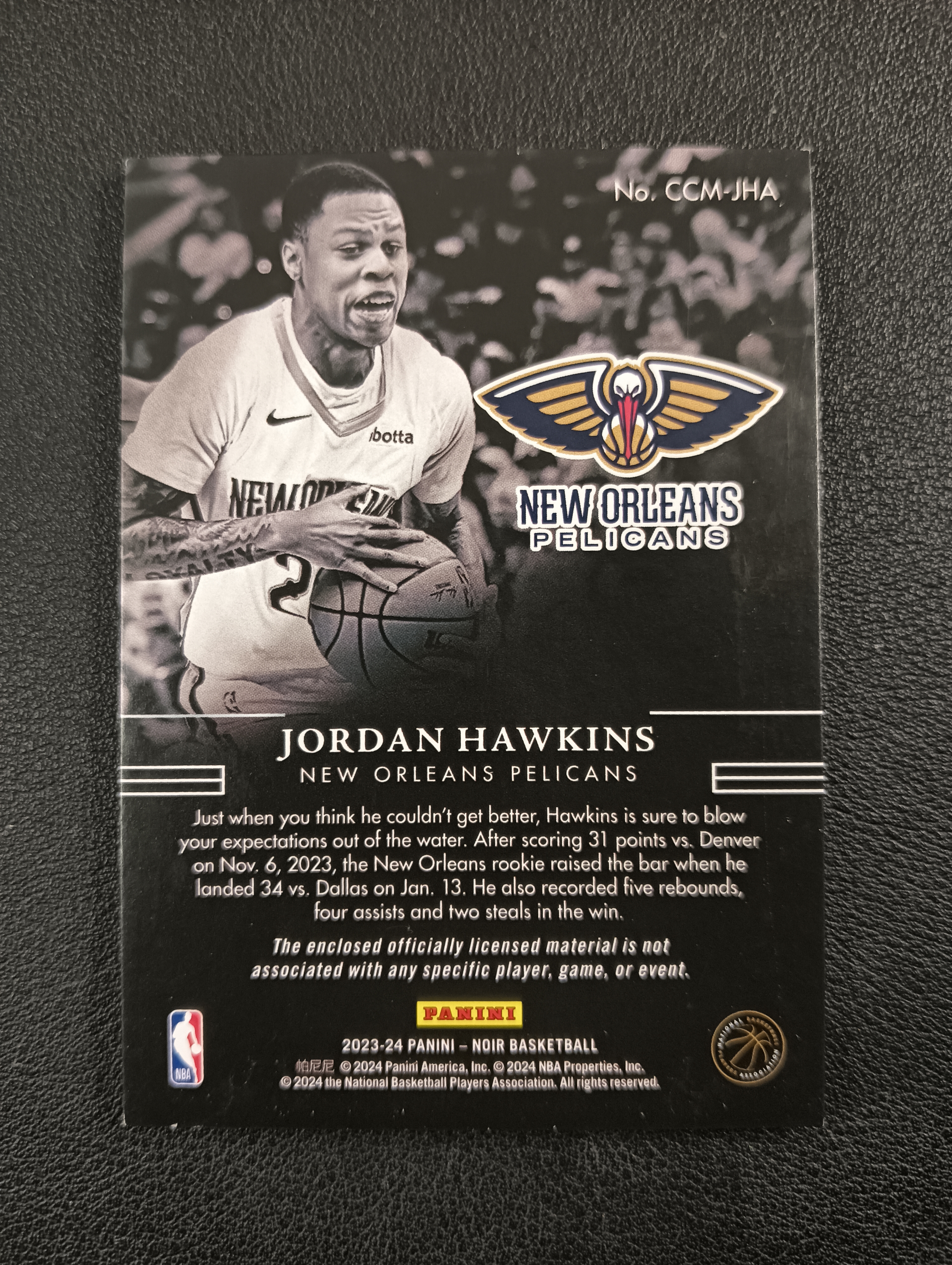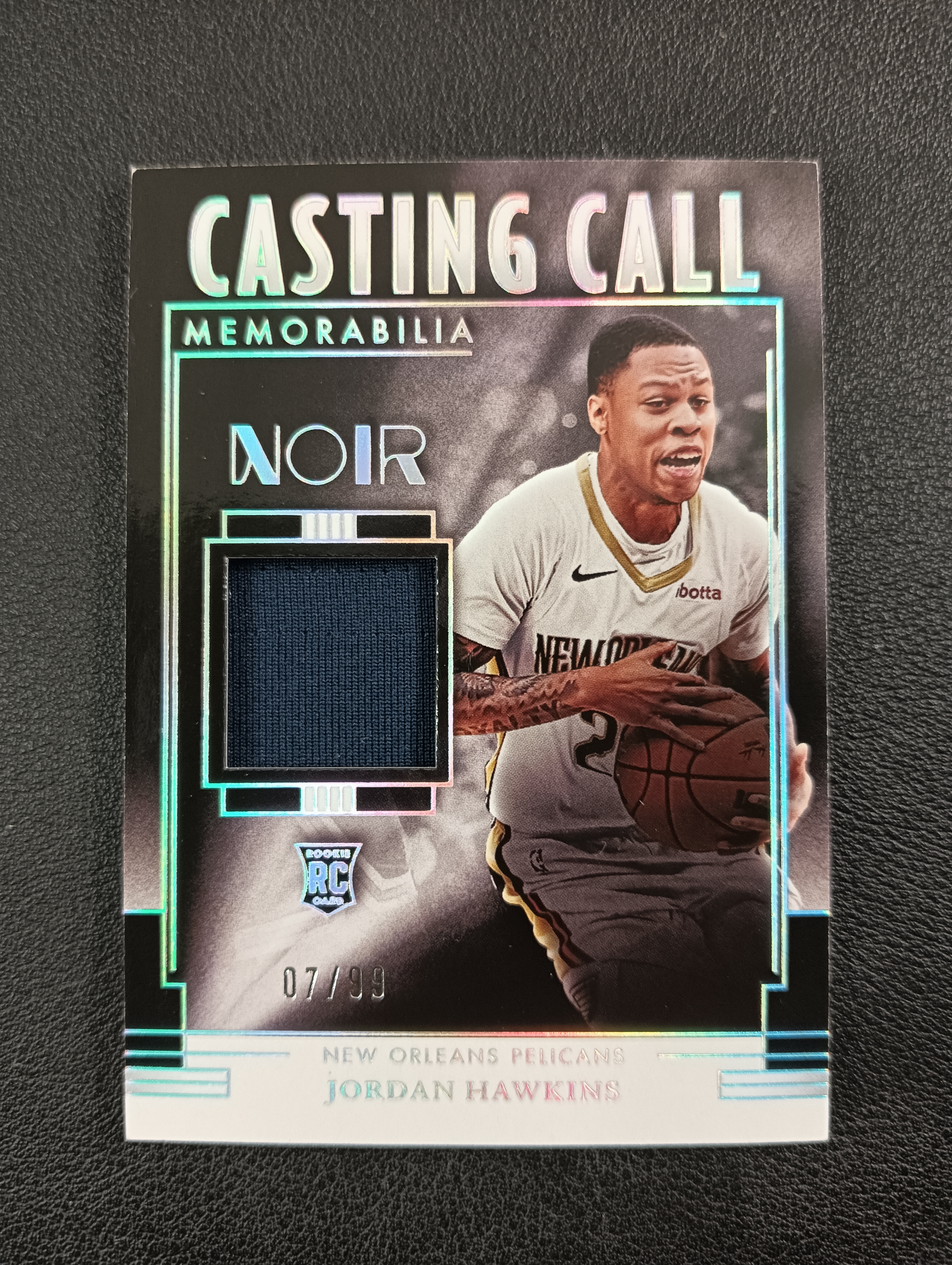2023-24 PANINI NOIR JORDAN HAWKINS RC 【卡仓-冰冰075】鹈鹕 乔丹霍金斯 全息银折射 CASTING CALL 新秀球衣物料卡 /99编 NO.CCM-JHA