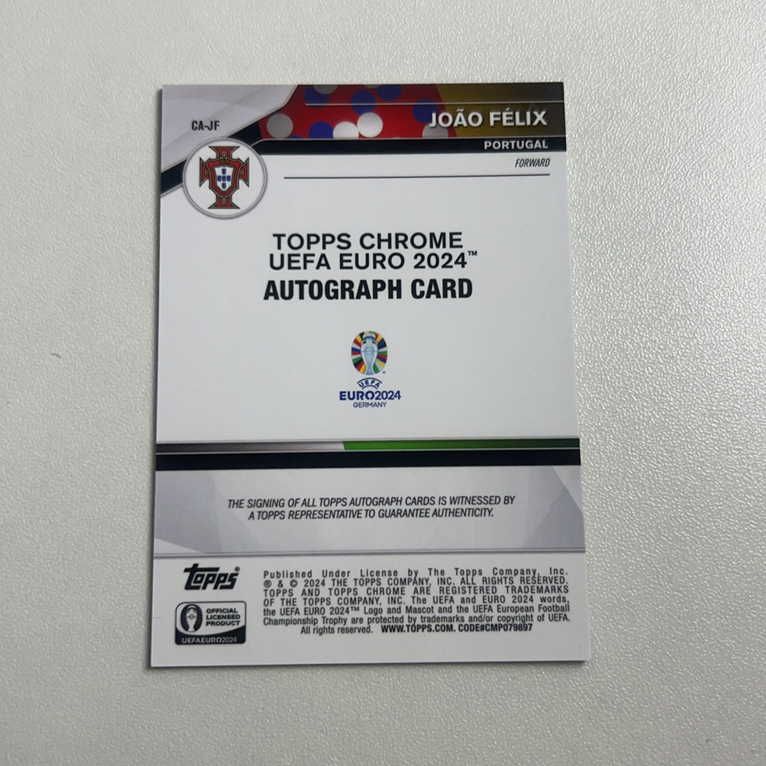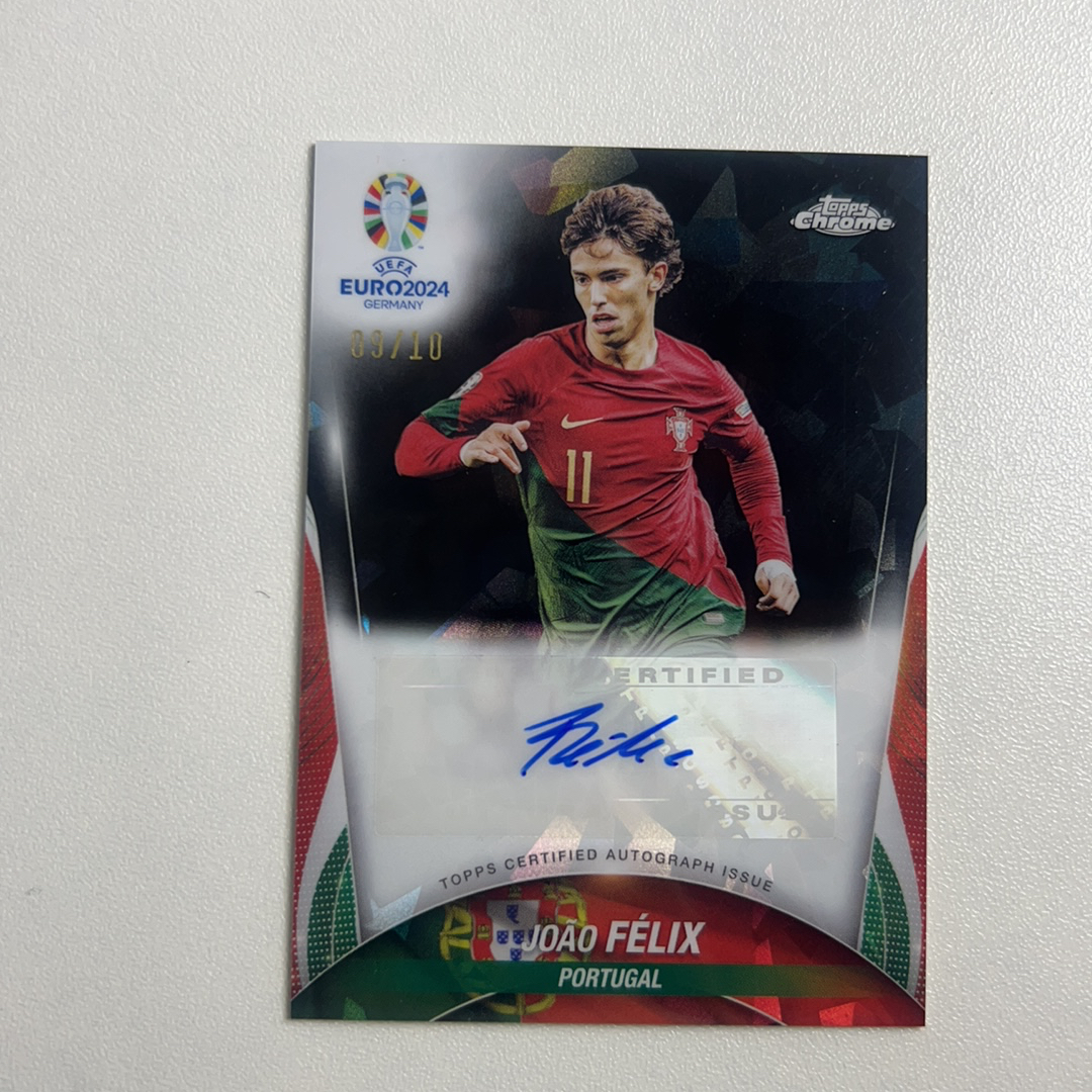 2024 Topps Chrome UEFA Euro Joao Felix 欧洲杯 蓝宝石 费利克斯 Joao Felix 菲利克斯 葡萄牙 欧洲杯 签字 9/10编 黑碎冰折 如图所示(3000)