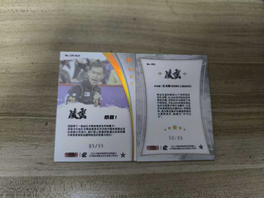 2023 奇卡 中国体育 元年凌云系列 乒乓球 孔令辉 传奇名将 奥运冠军 世界冠军 红黄折 单人签字和单人卡 完美签 09/99编 品相完美 专收必备