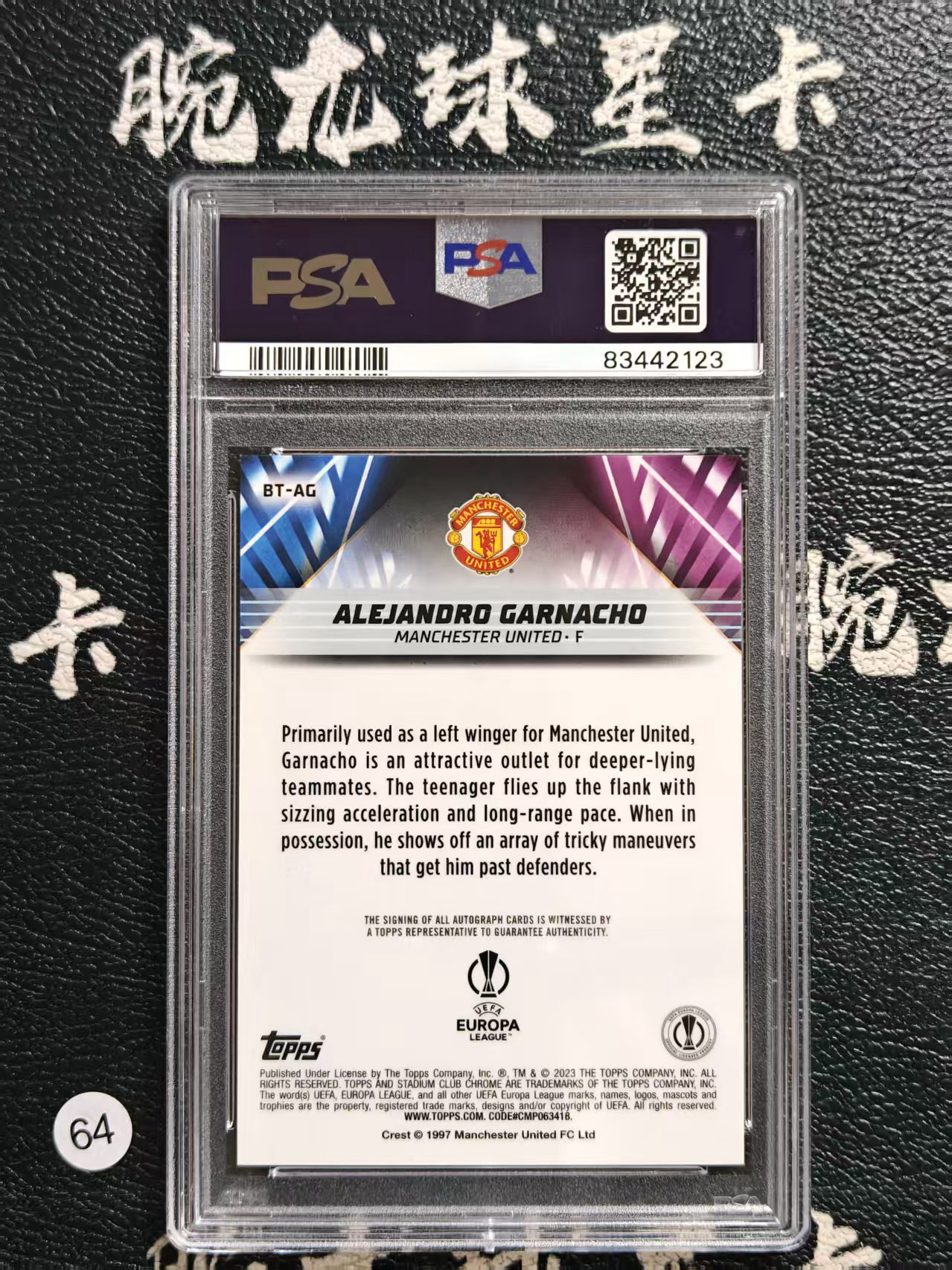 2023 【腕龙拍卖 接代卖】 腕龙KobeAD1 Topps Stadium Club 欧冠 竞技场 加纳乔 曼联 RC新秀 光之队特卡 签字 PSA9/10分 ALEJANDRO GARNACHO