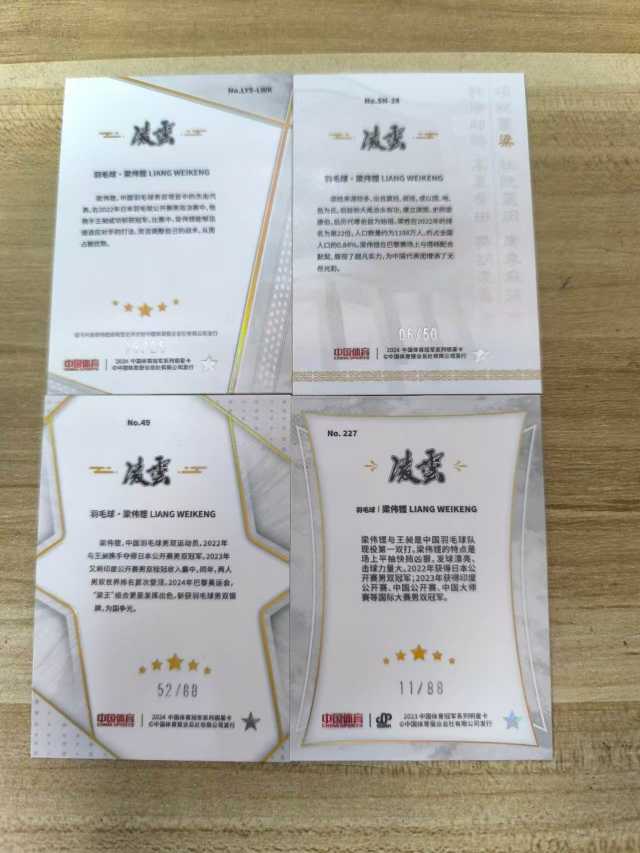 2024 奇卡 QICA 中国体育 凌云 梁伟铿 羽毛球 25编蓝折签字 50编红传姓四方 蓝碎冰单人卡 卡品如图 收藏必备