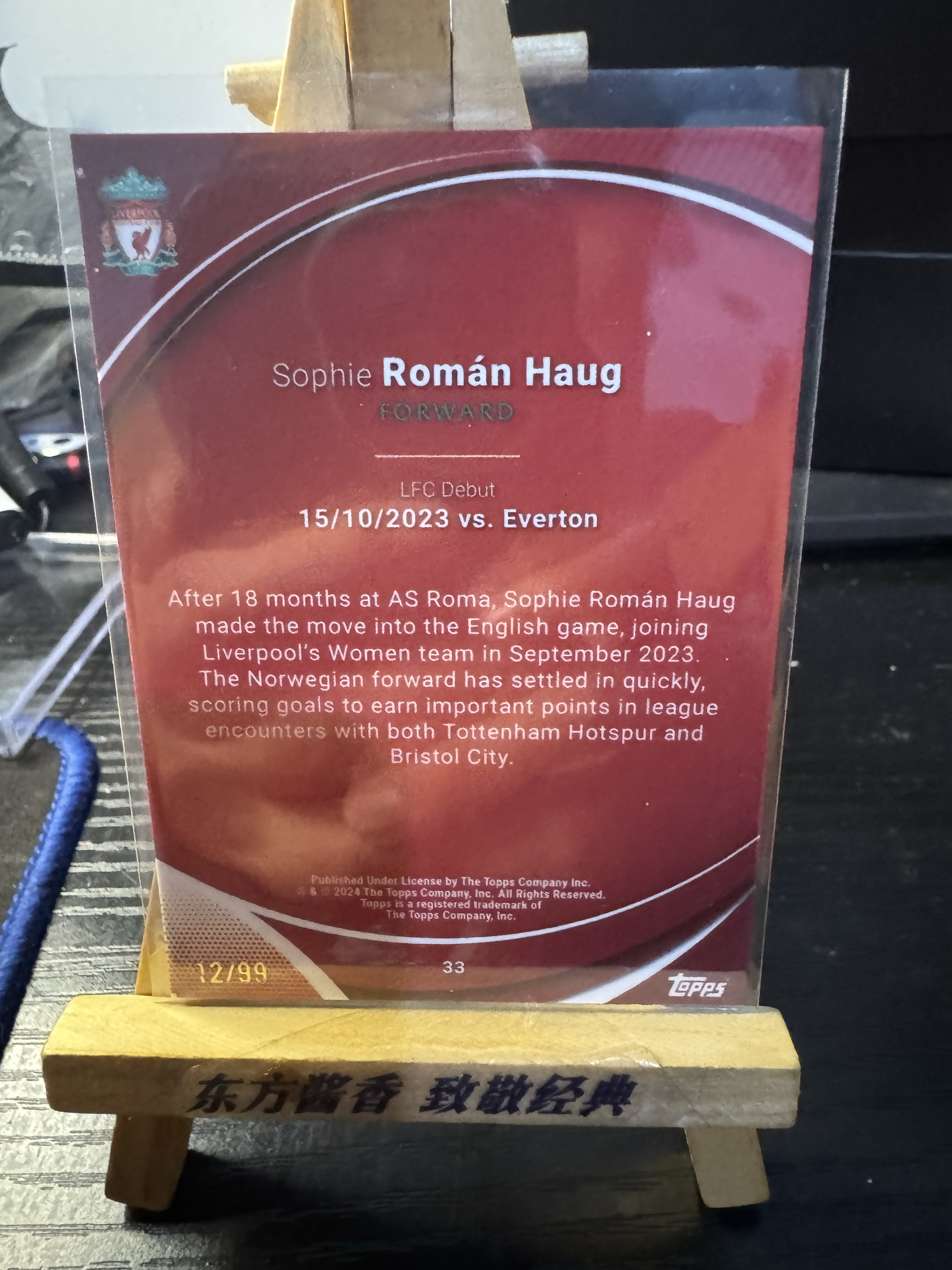 2024-25 Topps Futera Unique Roman haug RC 利物浦队盒 女足 新秀RC 洛曼豪格 sophie Roman 新秀 99编 红配红 卡品如图