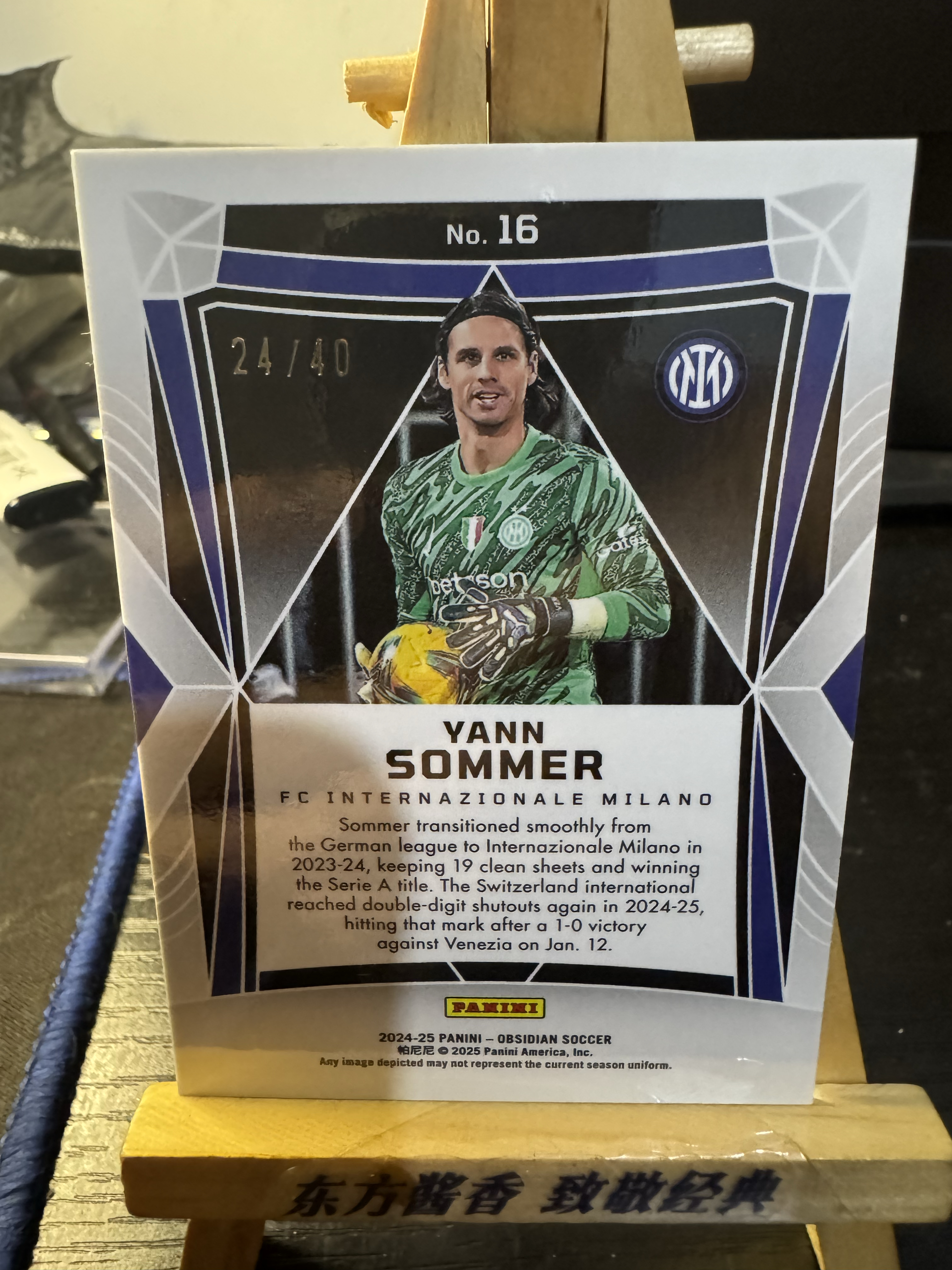 2024-25 Panini Cornerstones Yann Sommer 索默尔 国际米兰 国米 意甲黑曜石 24/40编 低编 卡品如图