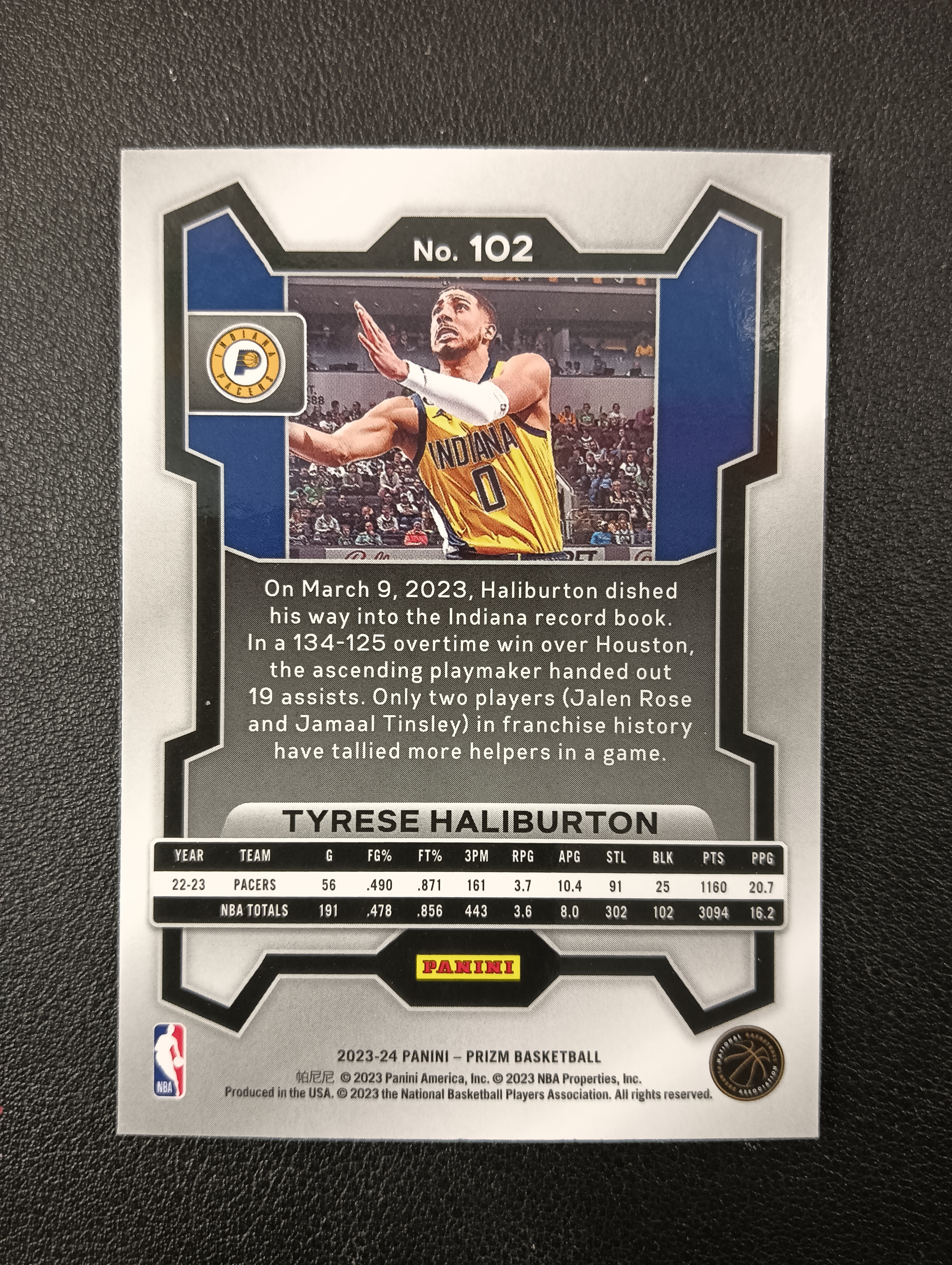 2023-24 PANINI PRIZM TYRESE HALIBURTON 【卡仓-晋语073】步行者 泰雷塞哈利伯顿 BASE NO.102