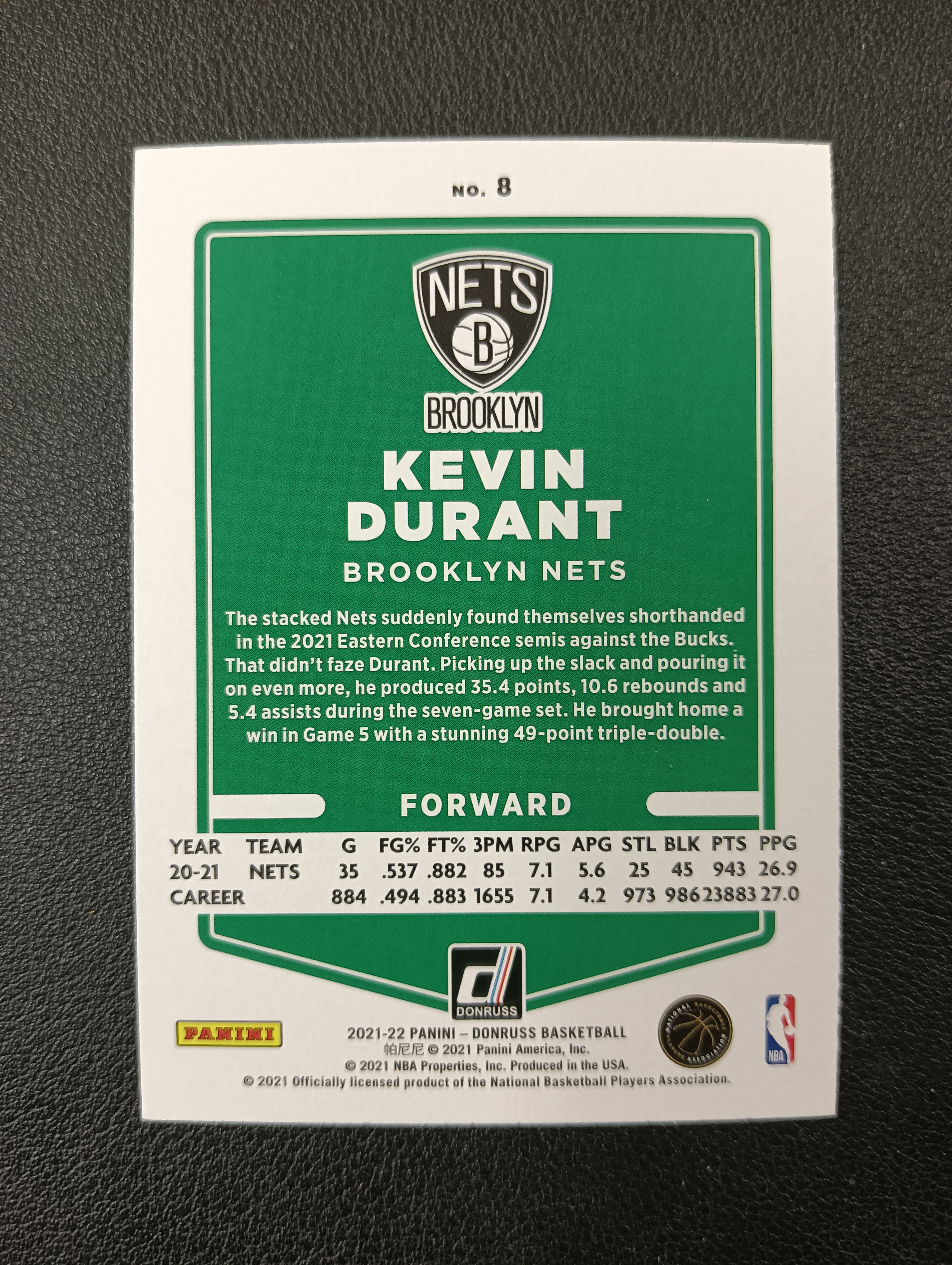 2021-22 PANINI 杜蕾斯 KEVIN DURANT 【卡仓-闪电065】篮网 凯文杜兰特 死神 KD BASE NO.8