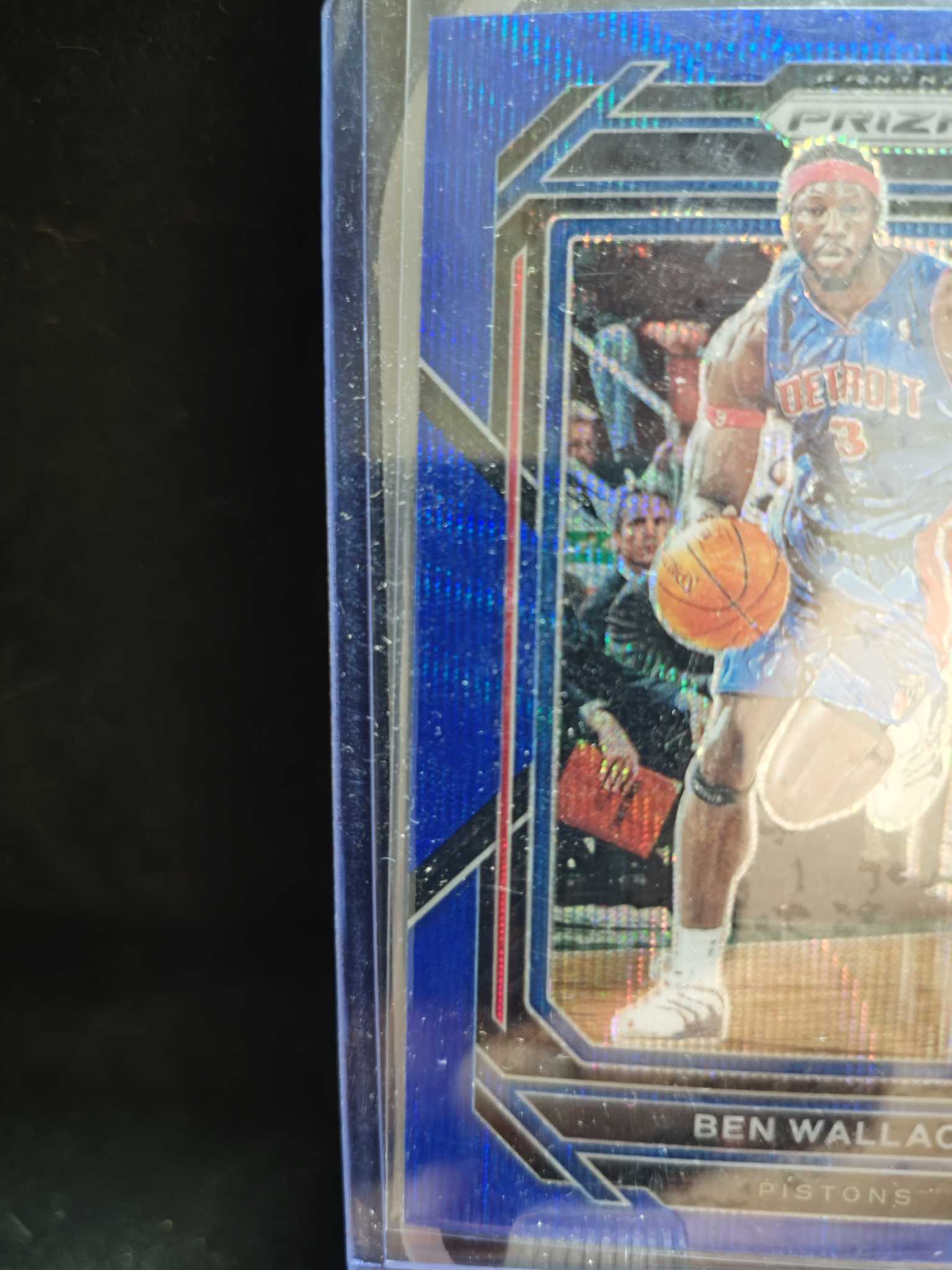 22-23帕尼尼pz 本华莱士蓝波纹特卡 非当天邮费不累加!偏远地区及港澳台等国外区域邮费另计!边角常态微瑕疵!看清实物图片,介意勿拍!另注 现单一卡价低于8rmb的本店将不提供卡套,实在供不起了!如有需要可联系另行购买
