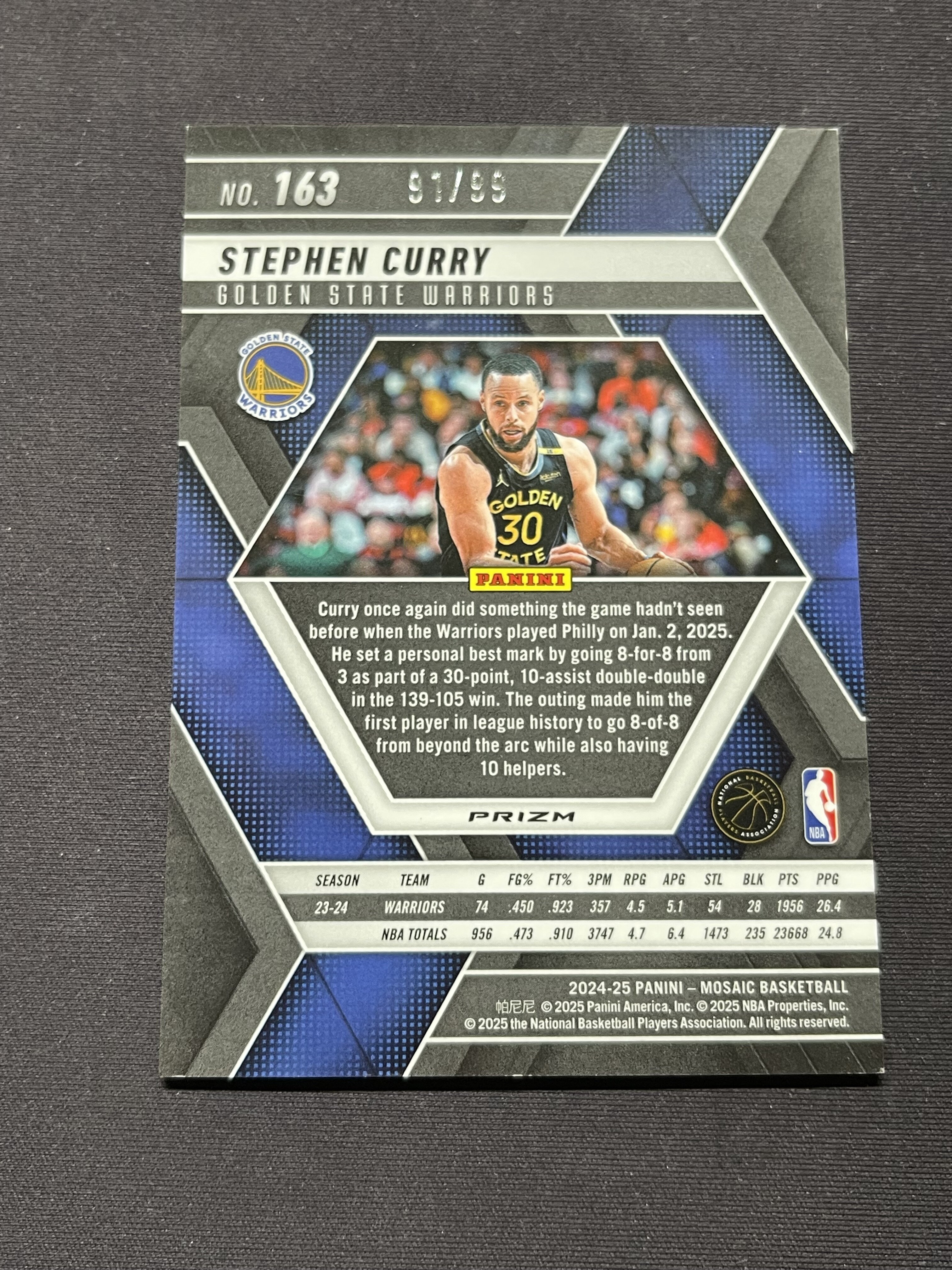 2024-25 Panini Mosaic Stephen Curry 马赛克 勇士 斯蒂芬库里 折射 紫马赛克折 91/99编 不累计「老夫子」ju035