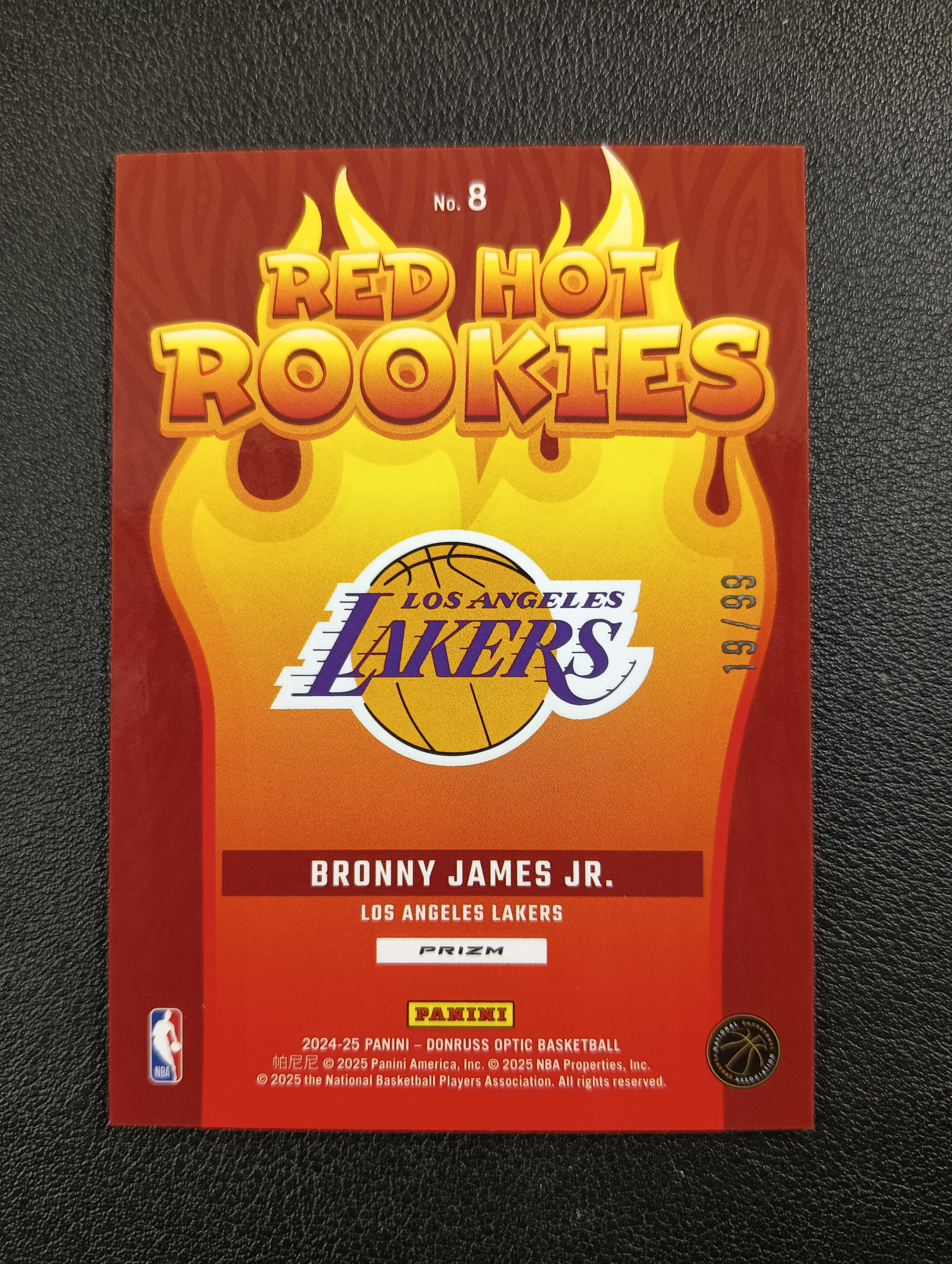 2024-25 PANINI 杜蕾斯OPTIC BRONNY JAMES JR. RC 【卡仓-冰冰076】湖人 小布朗尼詹姆斯 红金圈圈折射 RED HOT 新秀火焰特卡 /99编 NO.8
