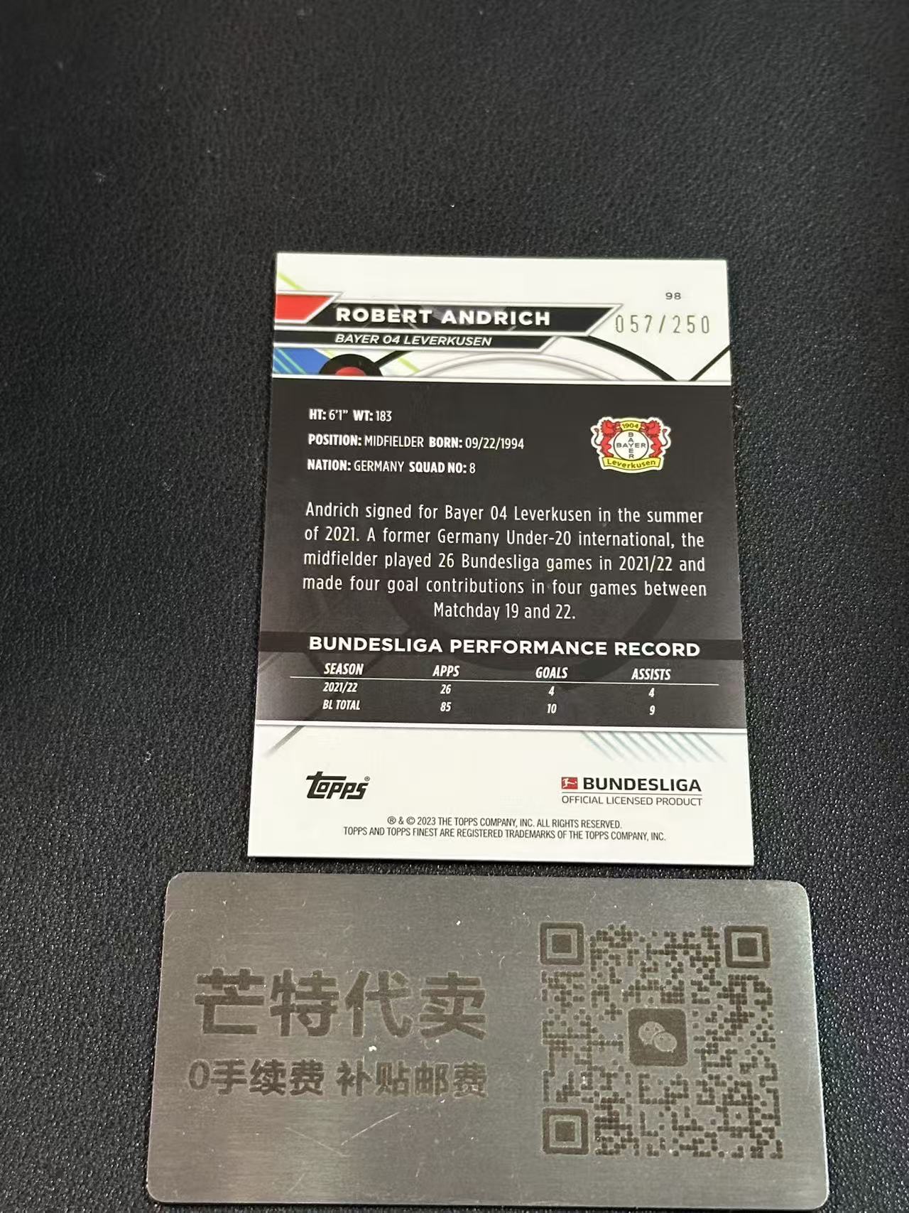 【芒特代卖】 2023 Topps Finest 德甲 Robert Andrich 勒沃库森 安德里希 /250编 卡品如图