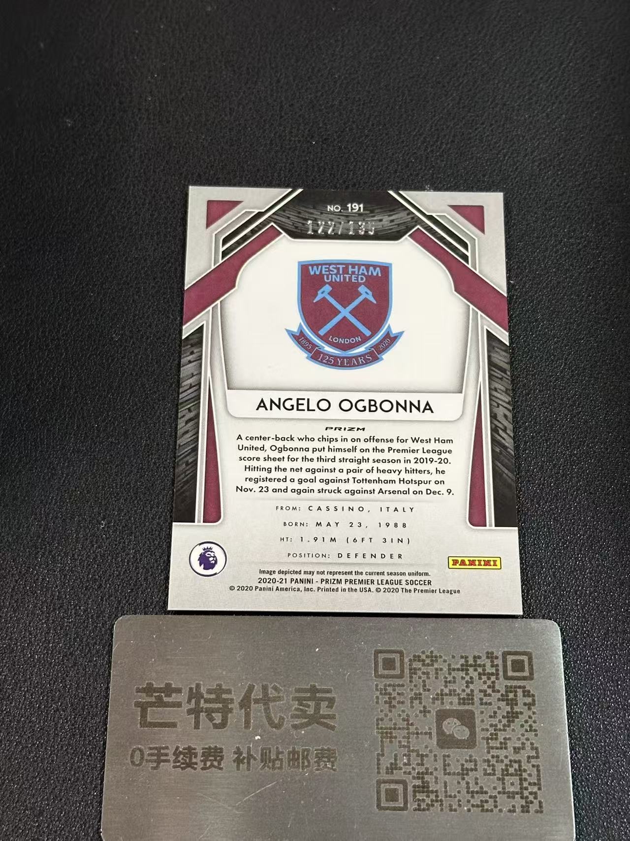 【芒特代卖】  2020-21 Panini Prizm Angelo Ogbonna 安吉诺 奥邦纳 红mojo折 135编 西汉姆联 英超