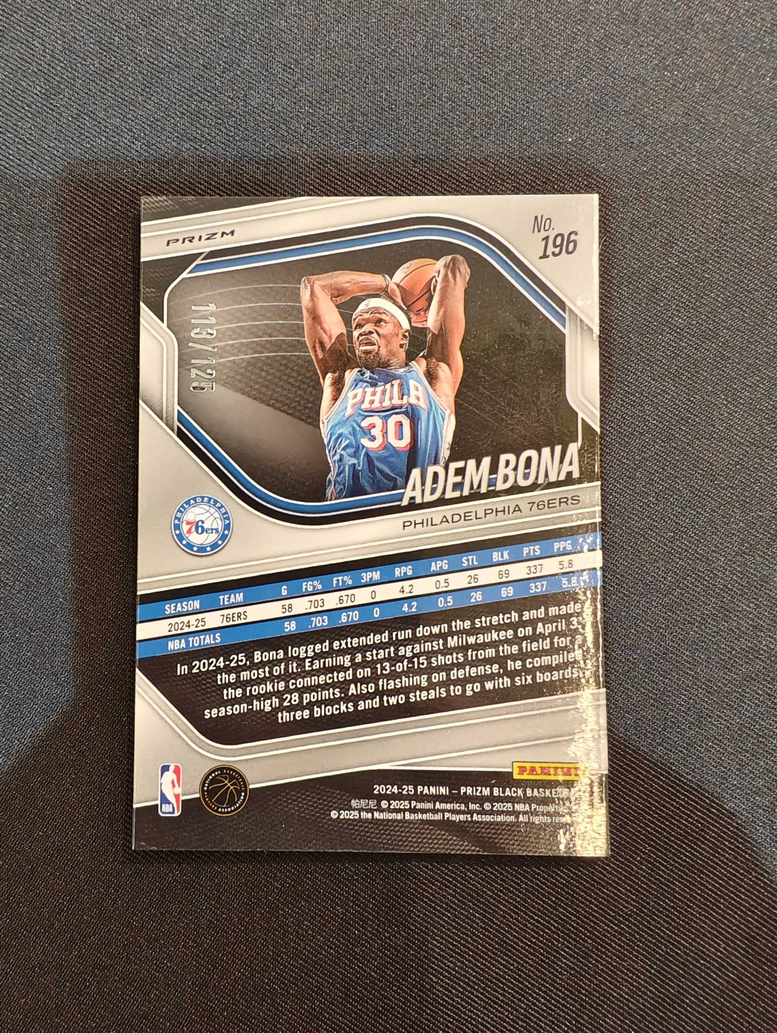 2024-25 Panini Prizm Black Adem Bona RC pz 新秀 阿德姆 博纳 125编 蓝碎冰折 76人 卡品如图 雄86