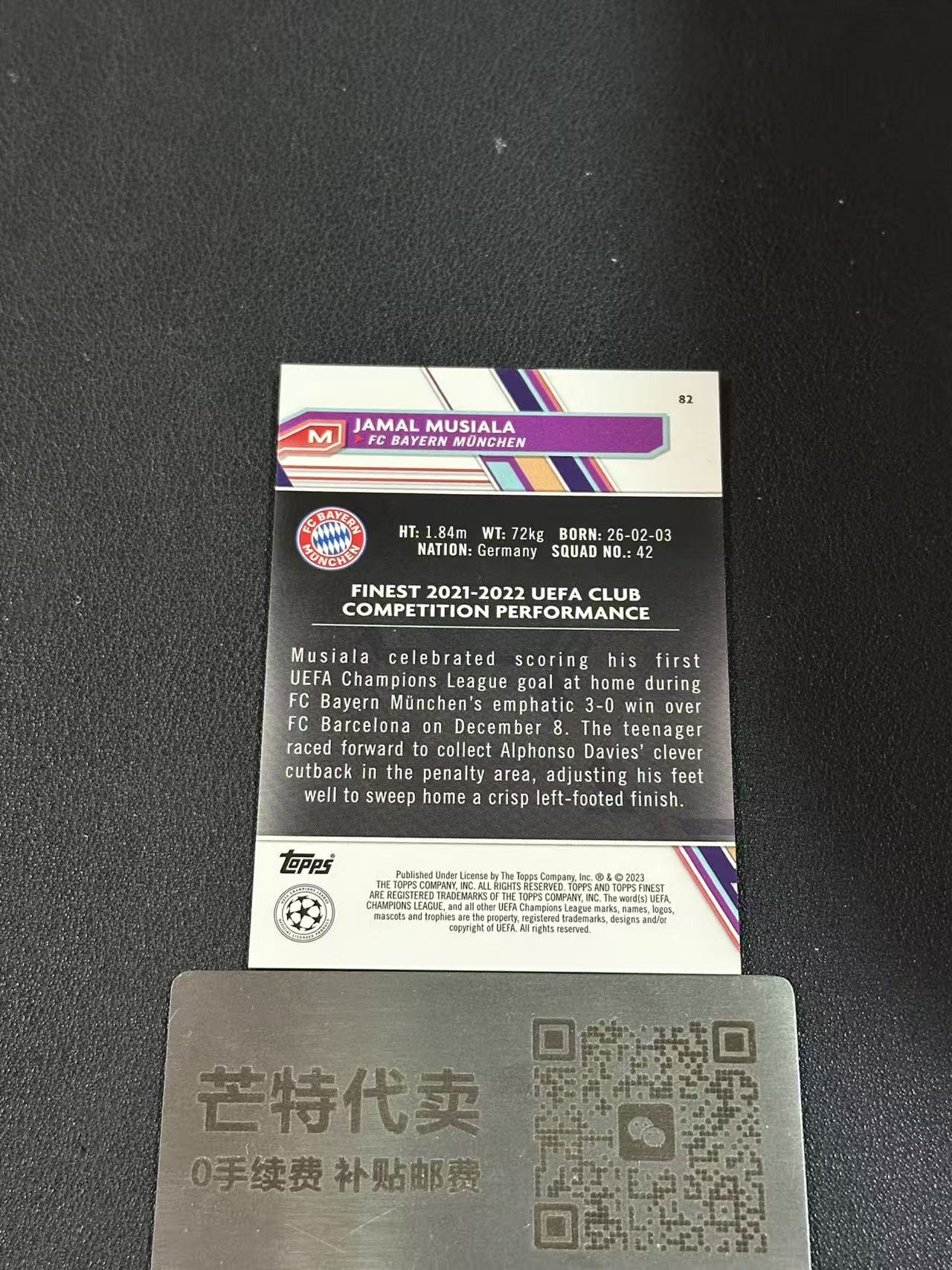 【芒特代卖】2023 Topps Finest 欧战 欧冠 JAMAL MUSIALA 穆夏拉 拜仁 德国 /99编 绿折