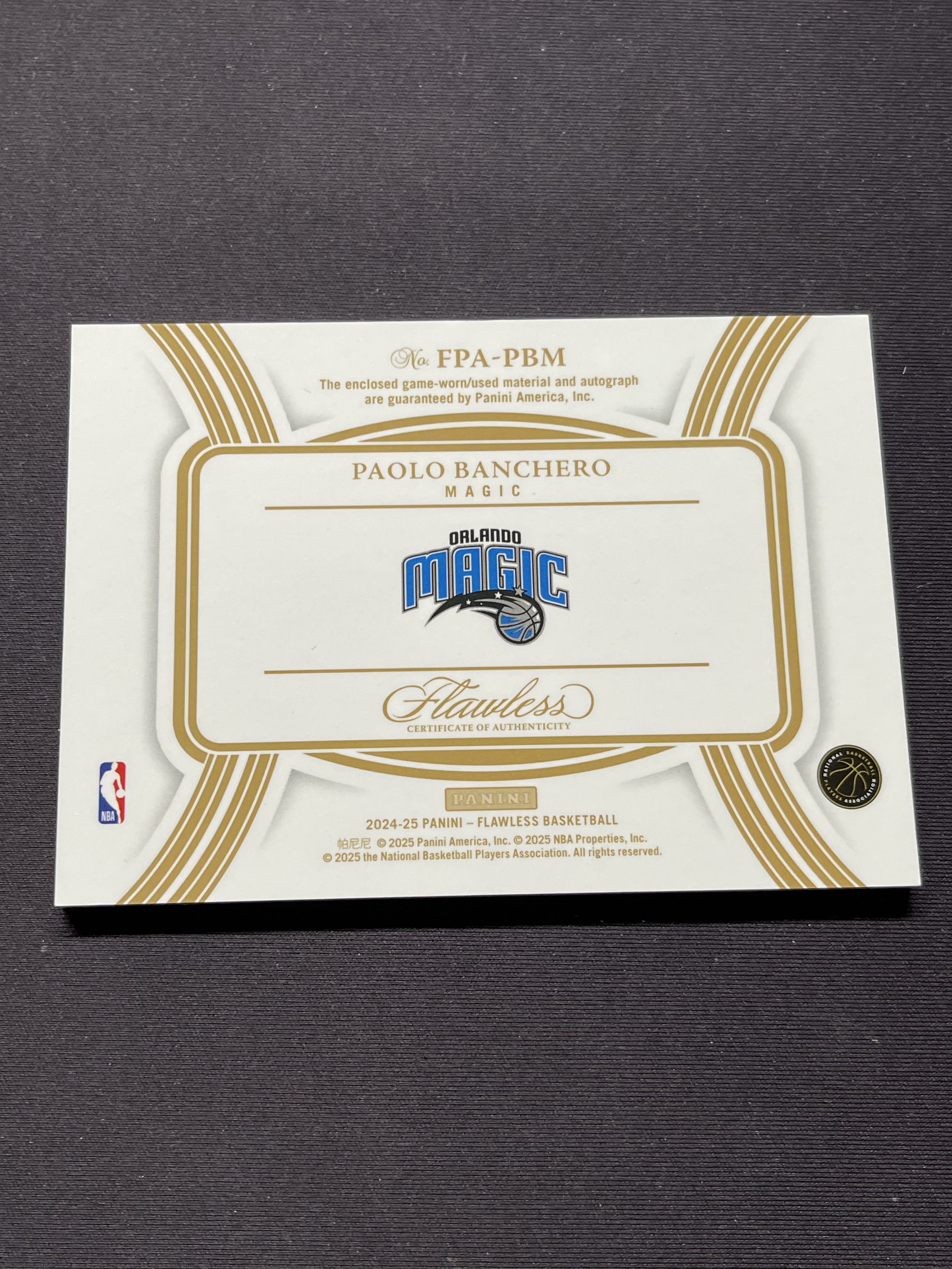 2024-25 Panini Flawless Paolo Banchero 手提 魔术 保罗班切罗 班凯罗 patch 签字卡签 PA FPA 21/25编 不累计「老夫子」Ape
