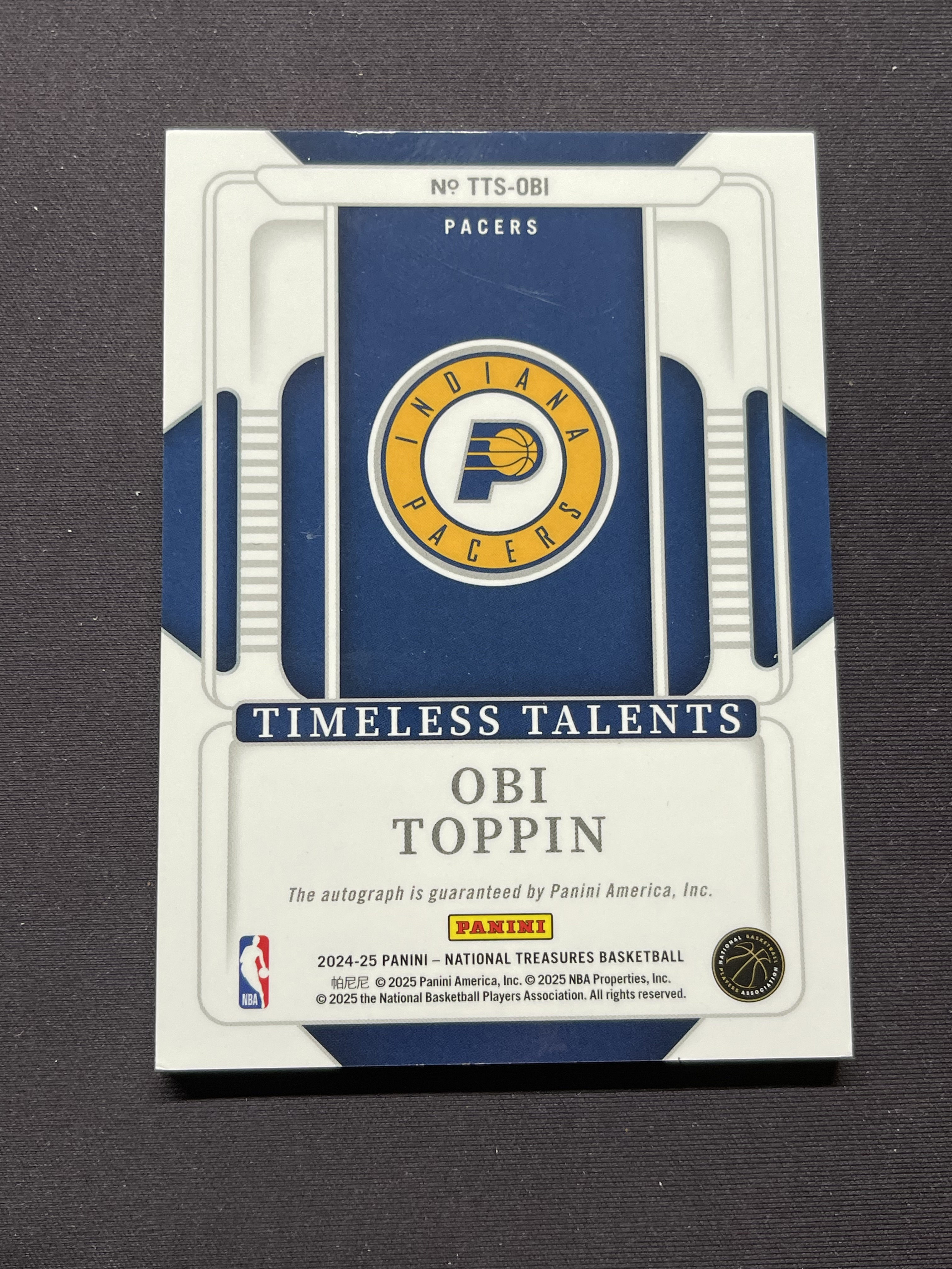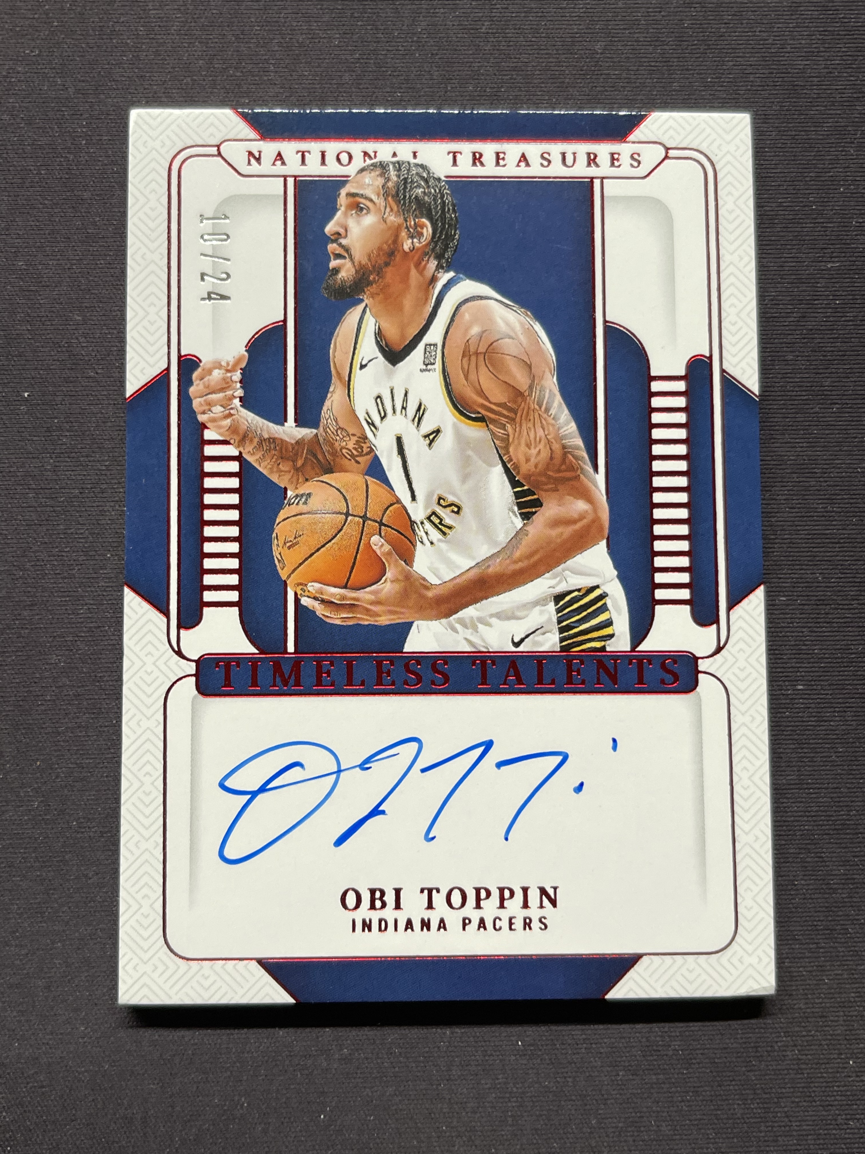 2024-25 Panini National Treasures Obi Toppin 国宝 步行者 奥比托平 Timeless Talents 签字卡签 24编 红版 瑕疵如图「老夫子」207
