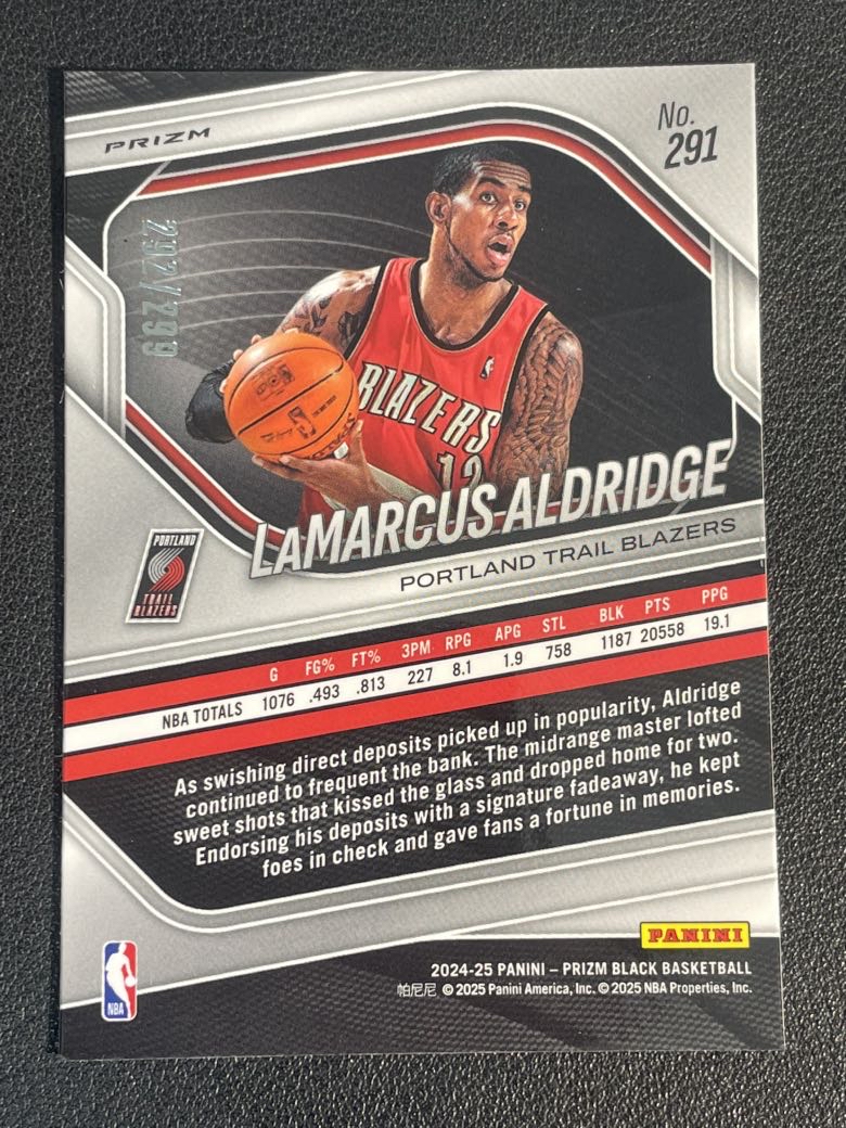 2024-25 Panini Prizm Black LaMarcus Aldridge 488 拉玛库斯 阿尔德里奇 开拓者 折射 红折 299编 实卡精美 卡品如图 尖叫代拍 pink