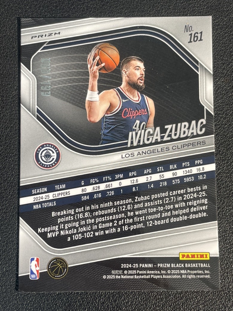 2024-25 Panini Prizm Black Ivica Zubac 500 伊维察 祖巴茨 快船 折射 蓝折 199编 实卡精美 卡品如图 尖叫代拍 pink