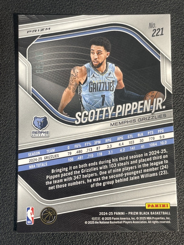2024-25 Panini Prizm Black Scotty Pippen Jr. 518 小斯科蒂 皮蓬 灰熊 折射 紫折 99编 实卡精美 卡品如图 尖叫代拍 pink