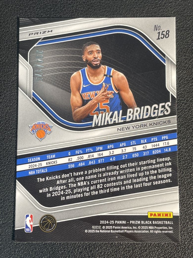2024-25 Panini Prizm Black Mikal Bridges 534 米卡尔 布里奇斯 尼克斯 折射 白折 175编 实卡精美 卡品如图 尖叫代拍 Lance
