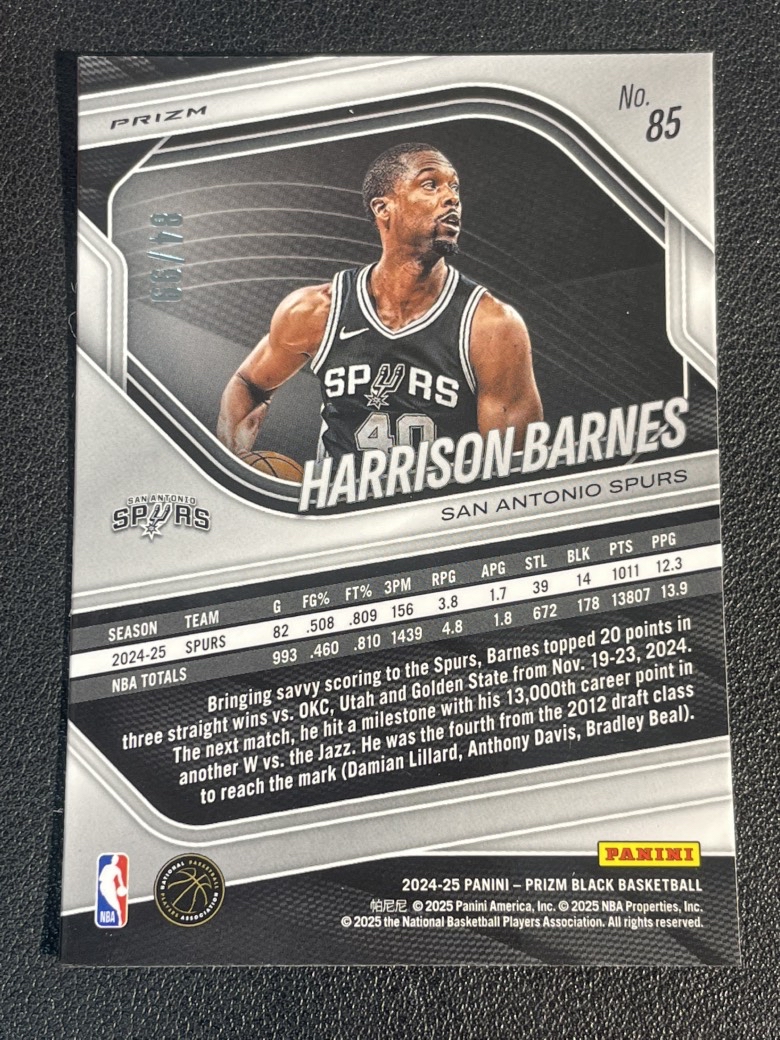 2024-25 Panini Prizm Black Harrison Barnes 554 哈里森 巴恩斯 马刺 折射 紫折 99编 实卡精美 卡品如图 尖叫代拍 用户95