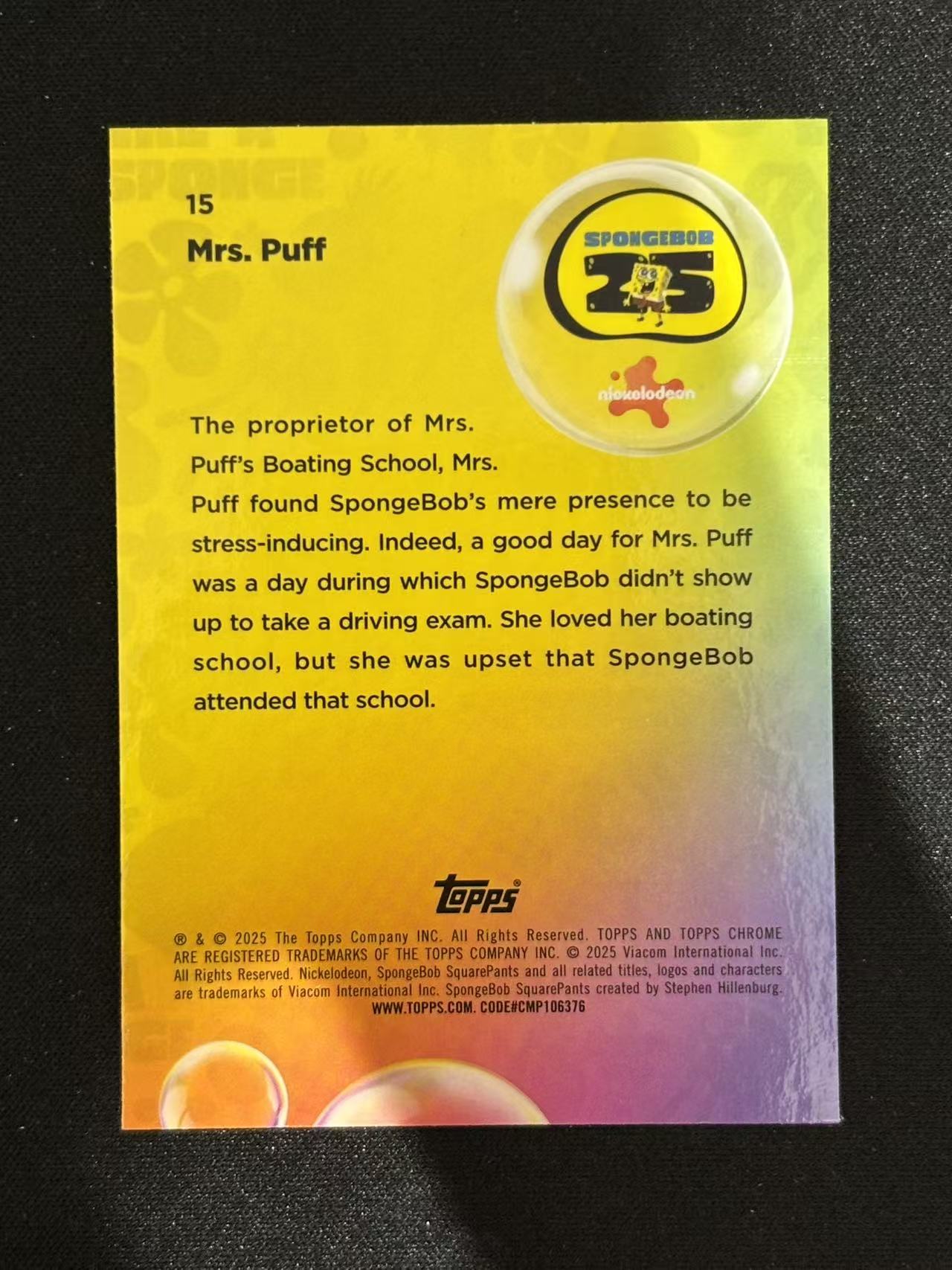 2025 Topps SpongeBob SquarePants Ms. Puff Chrome 海绵宝宝25周年 河豚老师 海洋折 /199编 - xuchuan