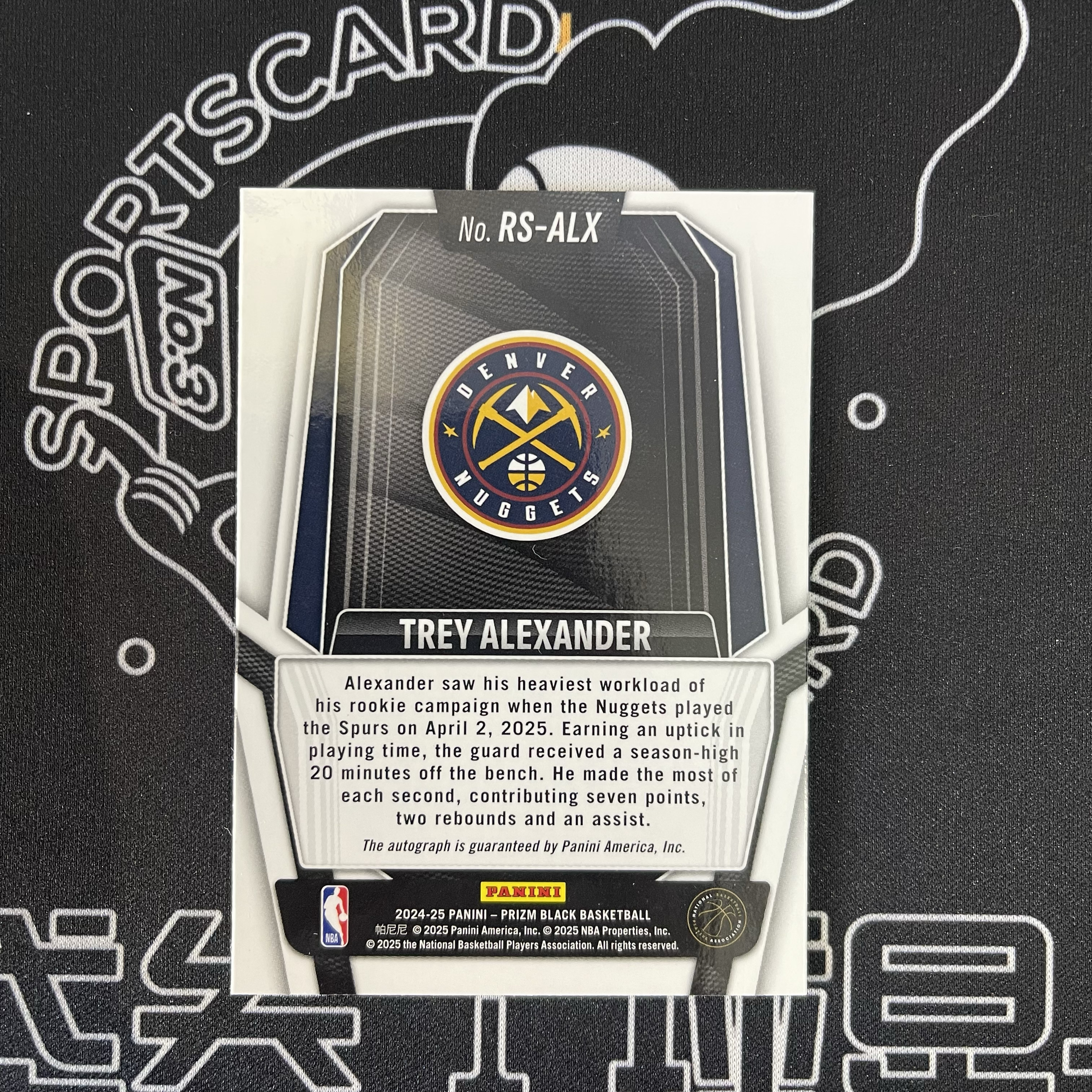 2024-25 Panini Prizm Black Trey Alexander RC pz 新秀 特雷 亚历山大 签字 RS 掘金 收藏必备 微瑕如图 大连发货同发货地可合并 汉堡