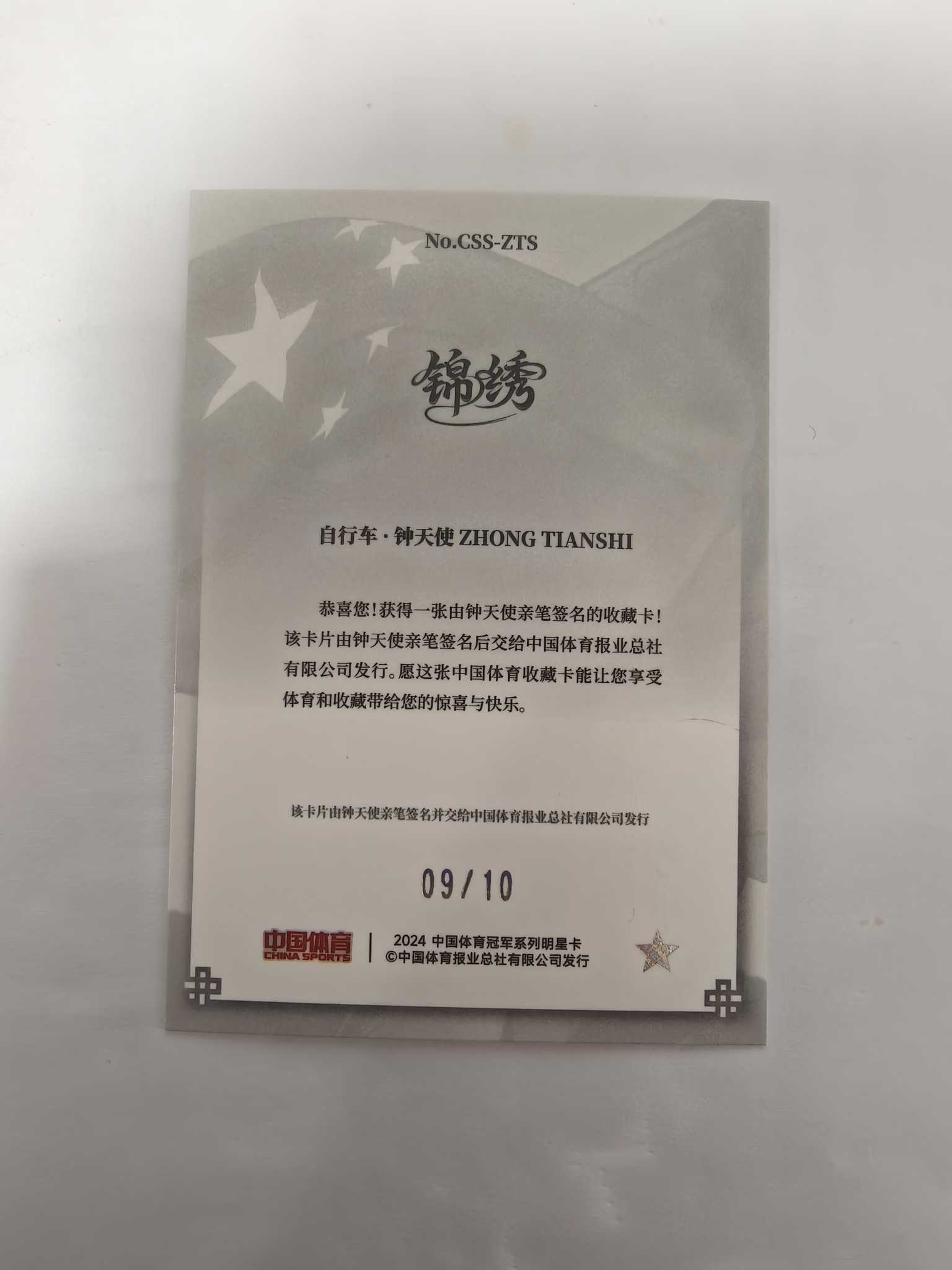 2024 奇卡 QICA 中国体育 锦绣 钟天使 自行车 签字 金折 国旗特卡 09/10编 卡品如图 收藏必备 Benny哥【妥不妥拍卖】