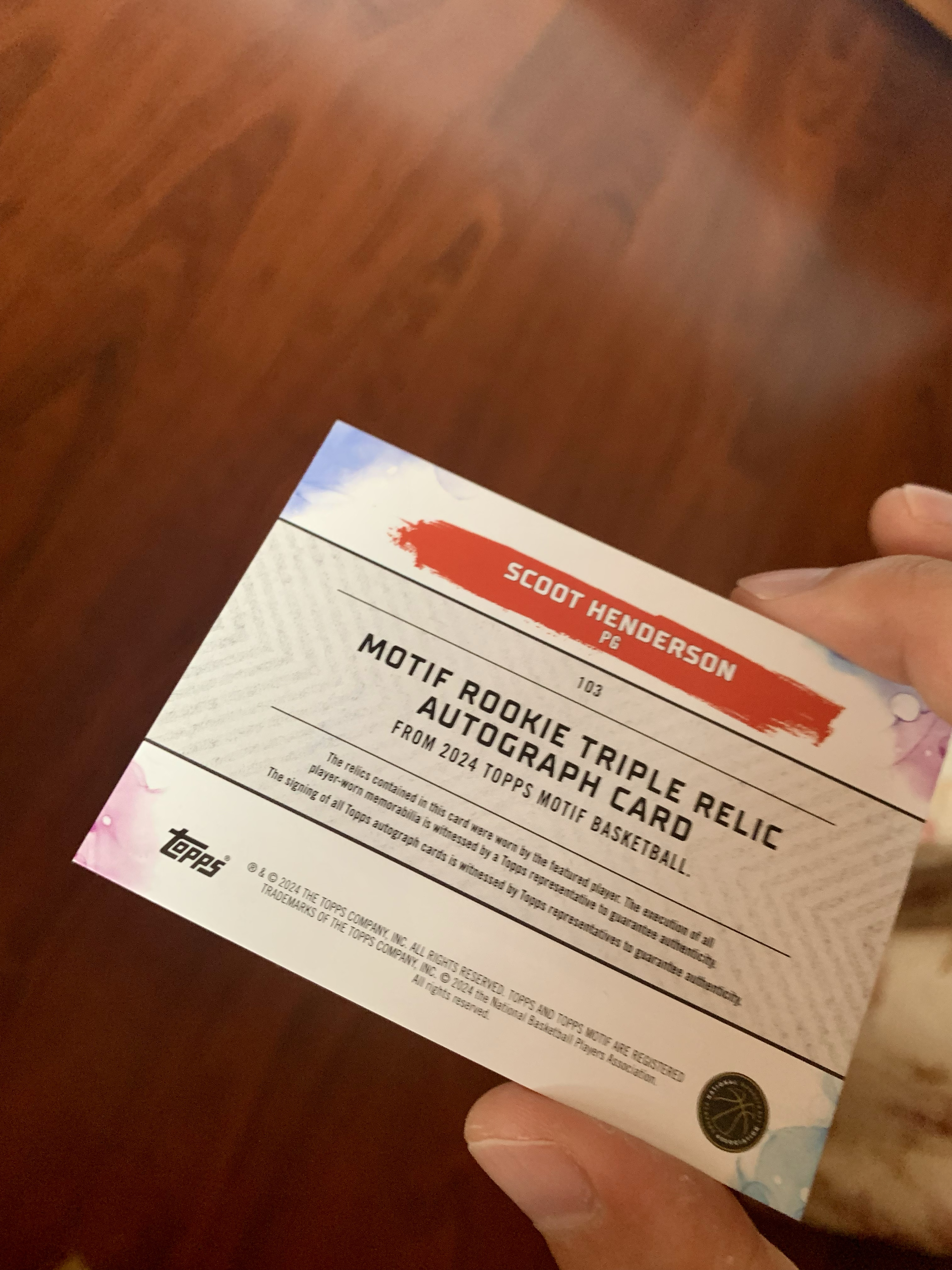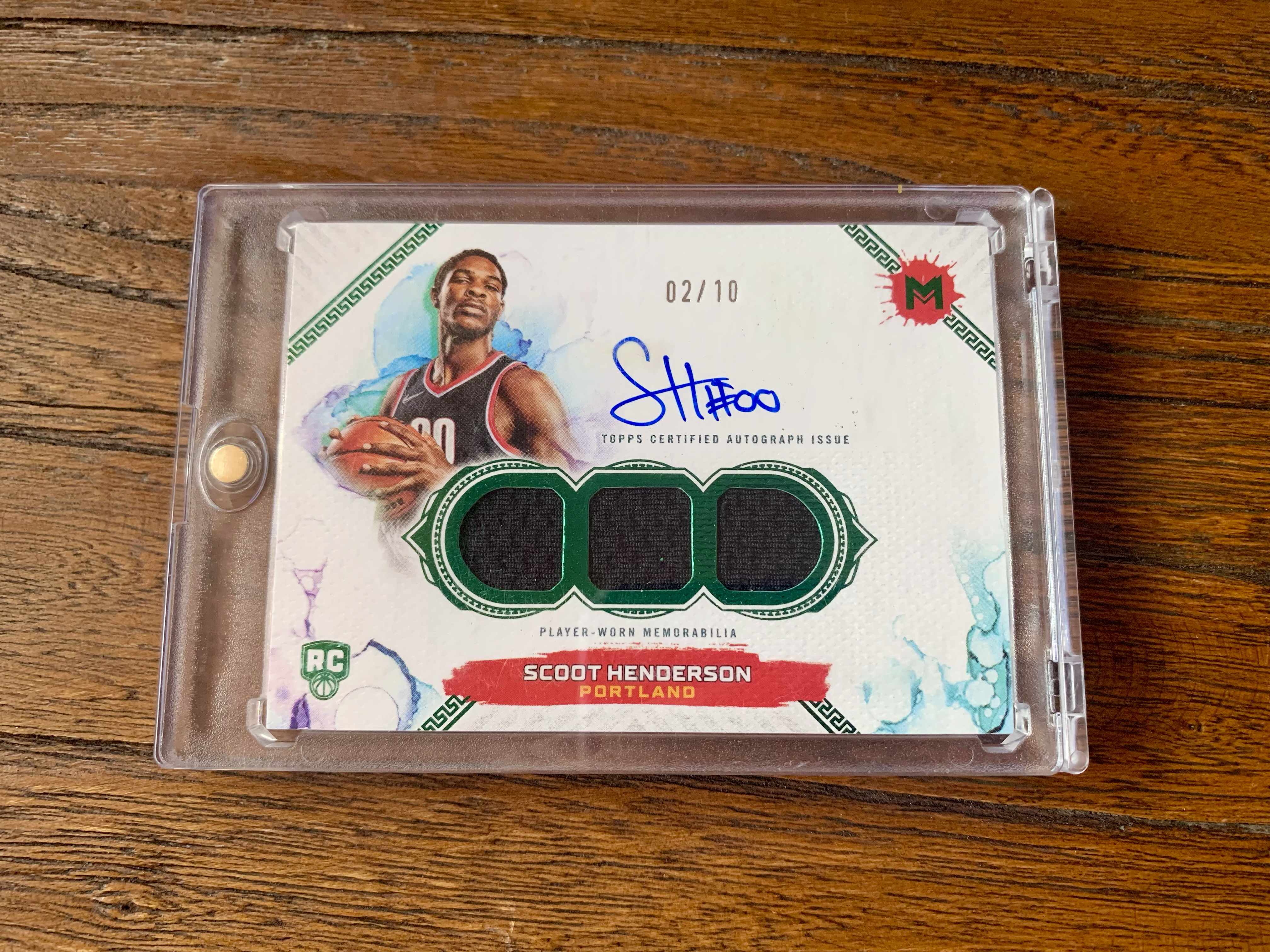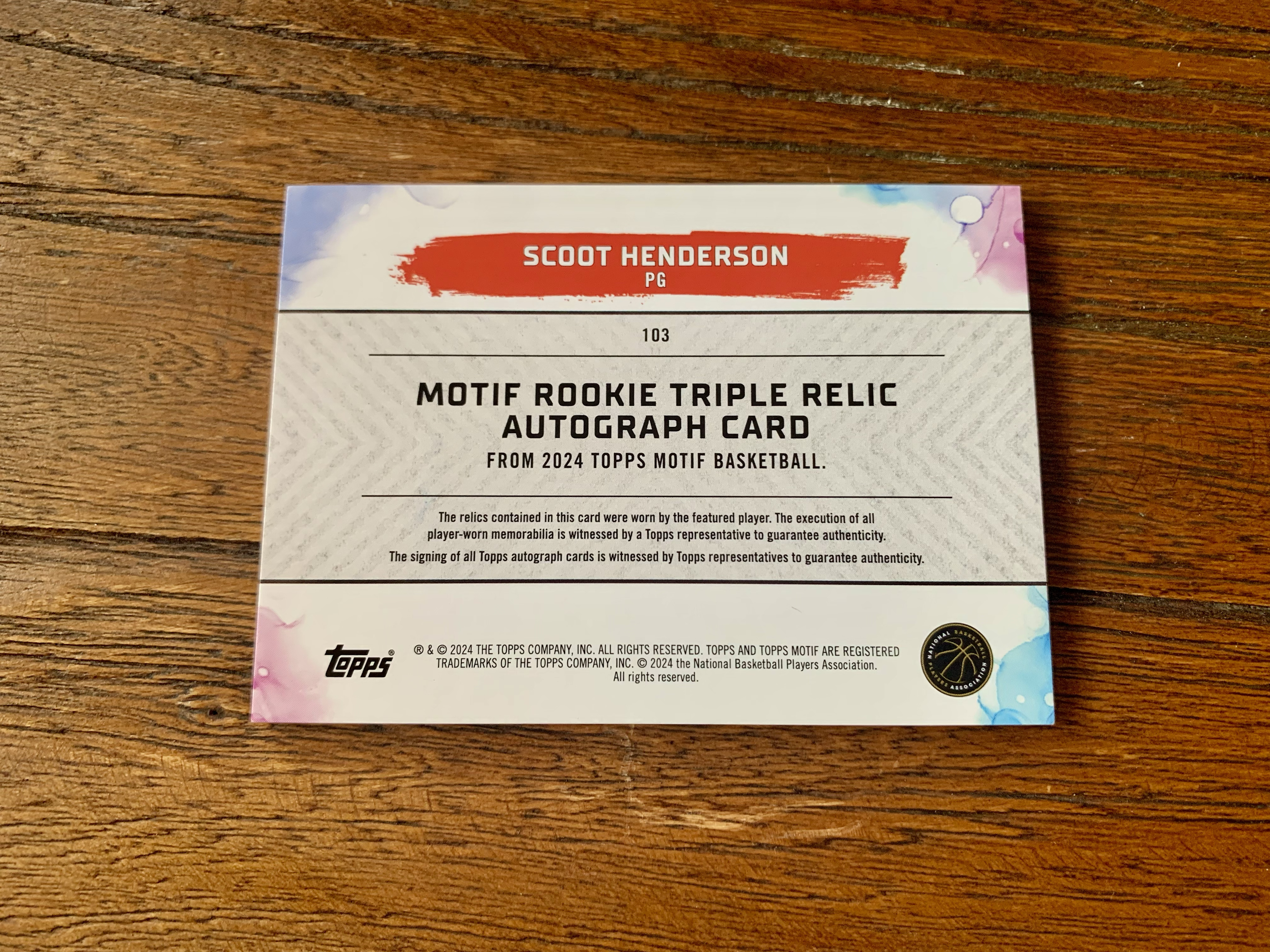 2024 Topps motif Scoot Henderson RC 斯库特-亨德森 新秀卡签 签字 02/10编 金版 背号铭文签 球衣GU落场亲穿切割 开拓者杨瀚森翰森夏普阿夫迪亚卡马拉队友
