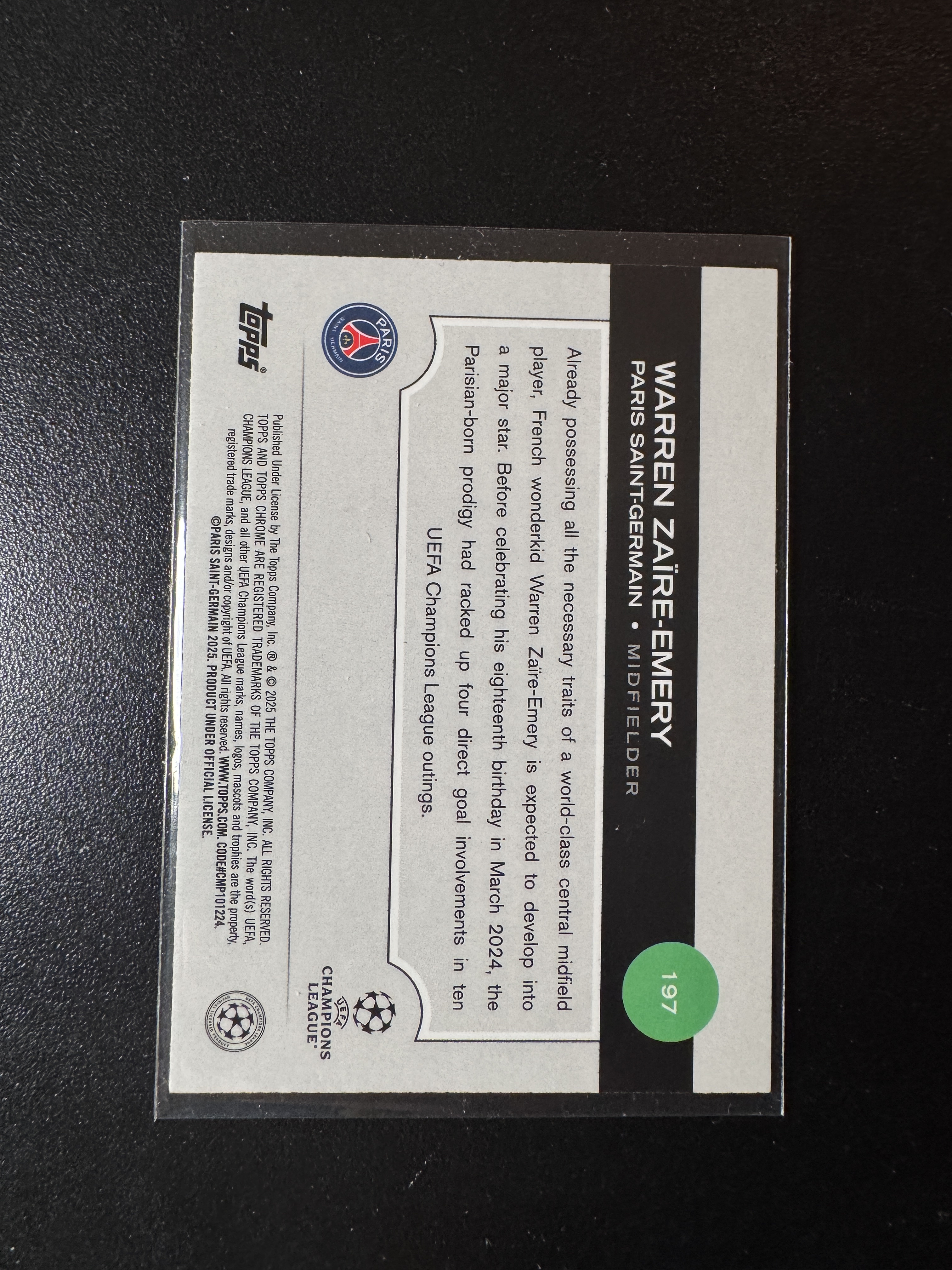 2024-25 Topps Chrome Warren Zaïre-Emery 欧冠 巴黎圣日耳曼 埃梅里 196/225编 折射 夜光波纹折 卡品如图