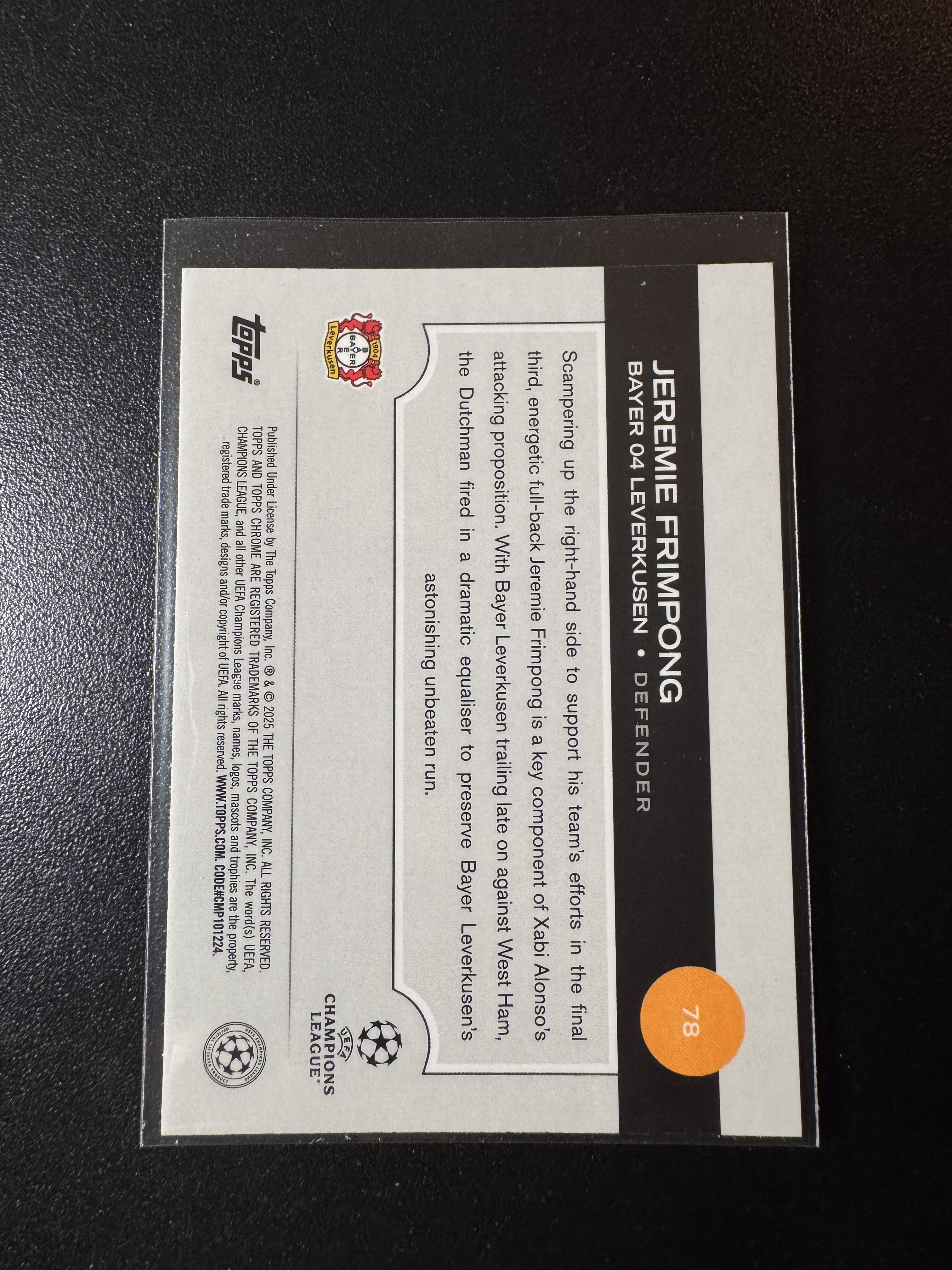 2024-25 Topps Chrome Jeremie Frimpong 欧冠Chrome 勒沃库森 利物浦 弗林蓬 青折 138/199编 卡品如图 收藏必备